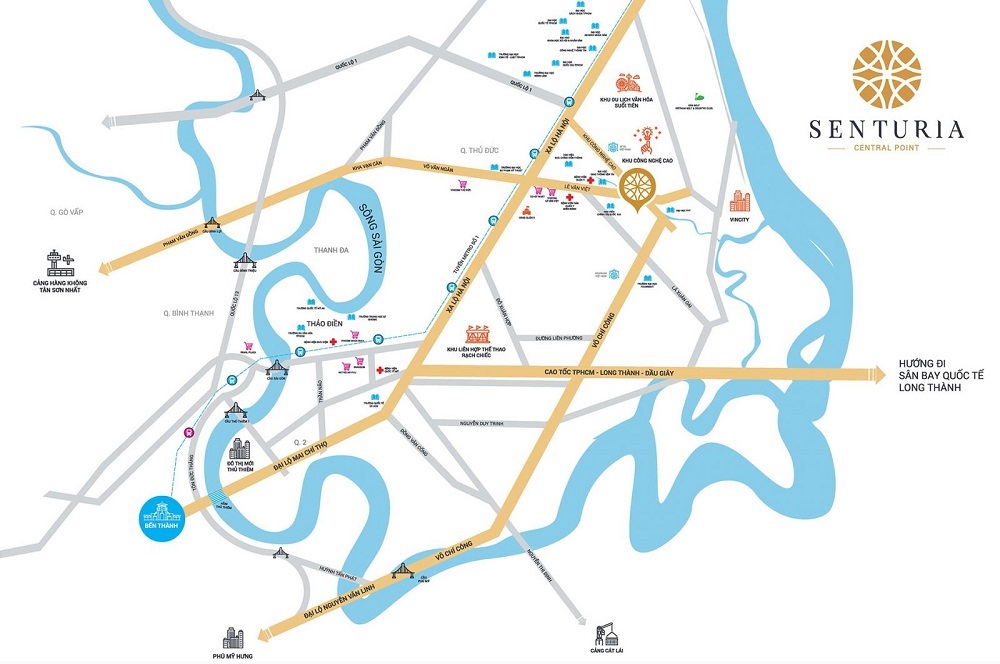 Khi sinh sống tại Dự án Senturia Central Point, cư dân chỉ mất 15 phút là có thể dễ dàng kết nối đến trung tâm thành phố. Vị trí dự án được các chuyên gia đánh giá là rất đẹp. Ngoài ưu điểm là nằm trong khu công nghệ cao tiện lợi mặt giao thông thì nhờ vị trí dự án cũng mang lại rất nhiều lợi thế cho tính thanh khoản của dự án về sau.