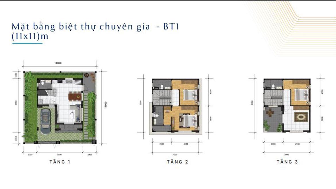 • Biệt thự 11 x 11 : số lượng 70 căn