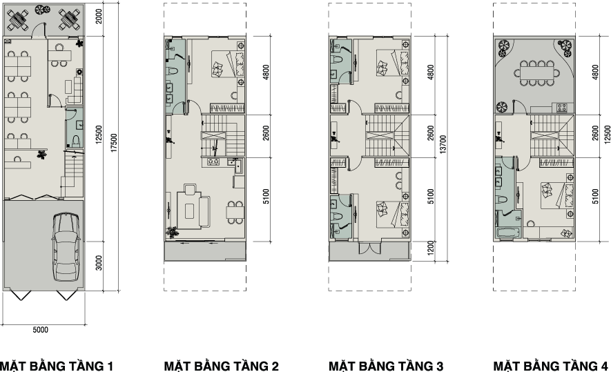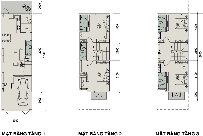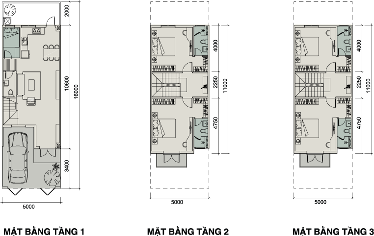 1 trệt 2 lầu ; hoàn thiện bên ngoài – thô bên trong