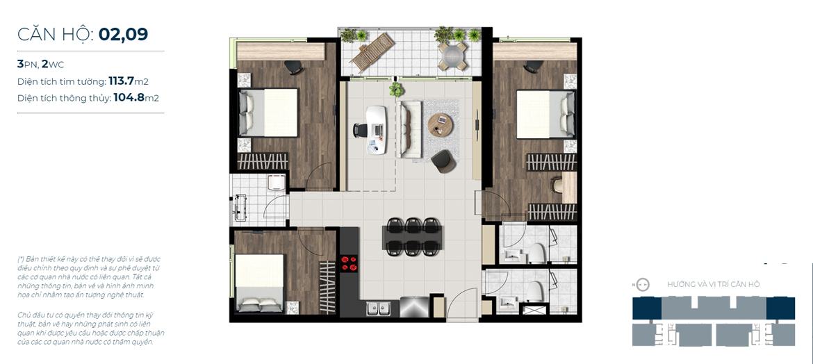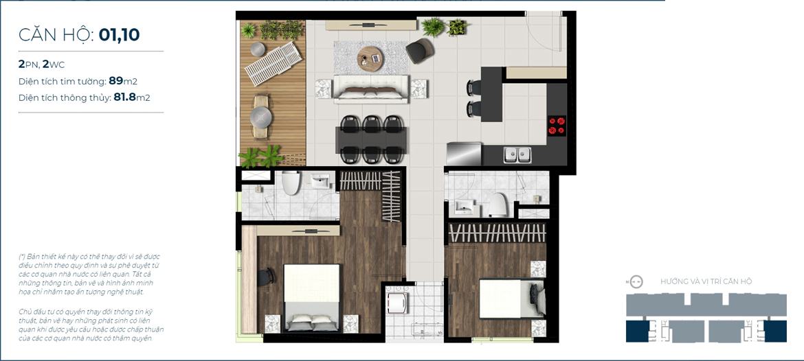 – Loại 3 phòng ngủ: diện tích 89 – 114m2 (Tầng 02 và 34)