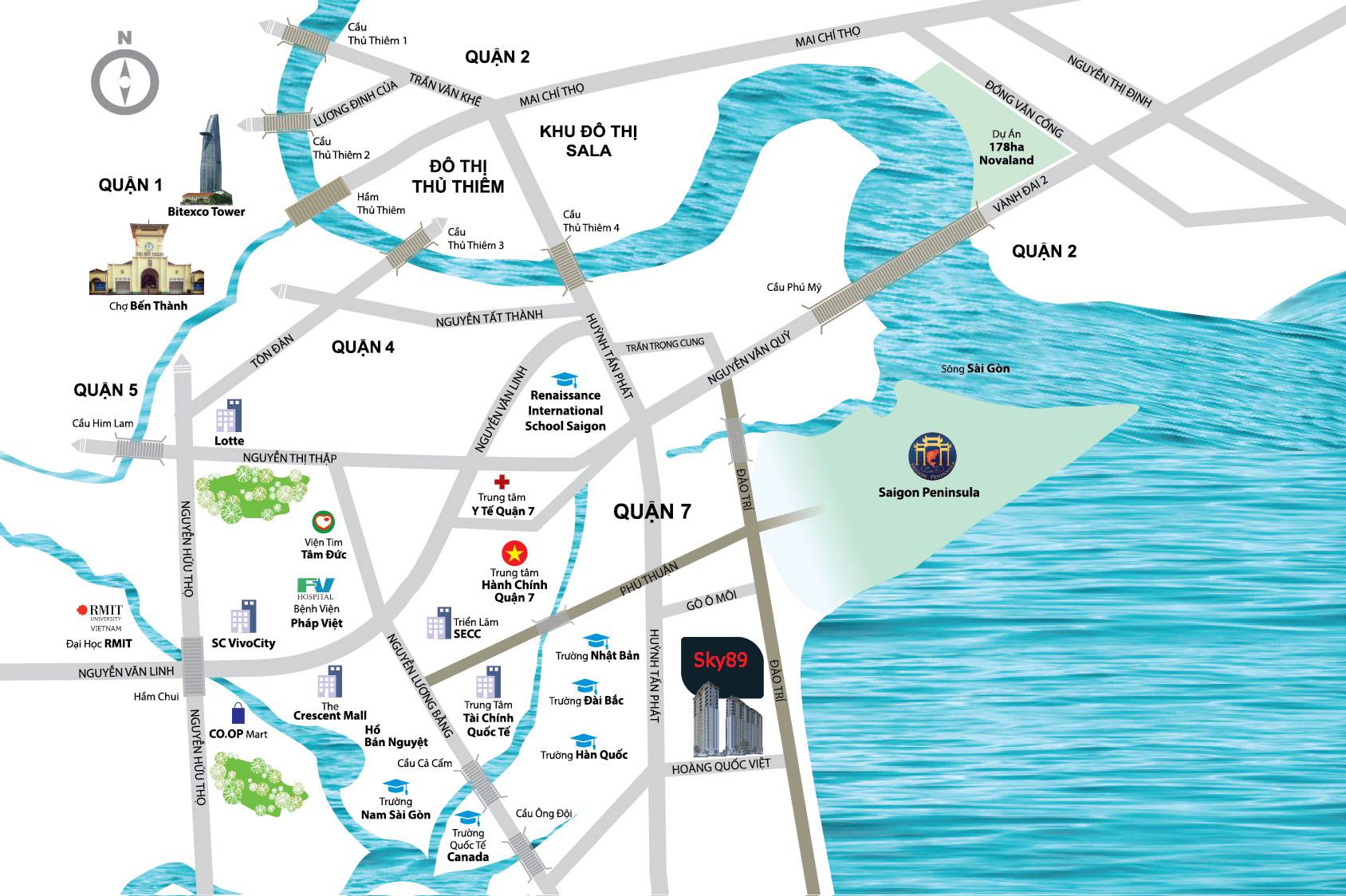 Được ví như trái tim Nam Sài Gòn, Sky89 chỉ cách “nửa bước chân” để kết nối đến khu đô thị Phú Mỹ Hưng, trung tâm thành phố và khu đô thị mới Thủ Thiêm. Sky89 thừa hưởng tiện ích từ hàng loạt dự án danh tiếng liền kề, các tổ hợp trung tâm thương mại, văn phòng và hệ thống trường học đẳng cấp quốc tế.