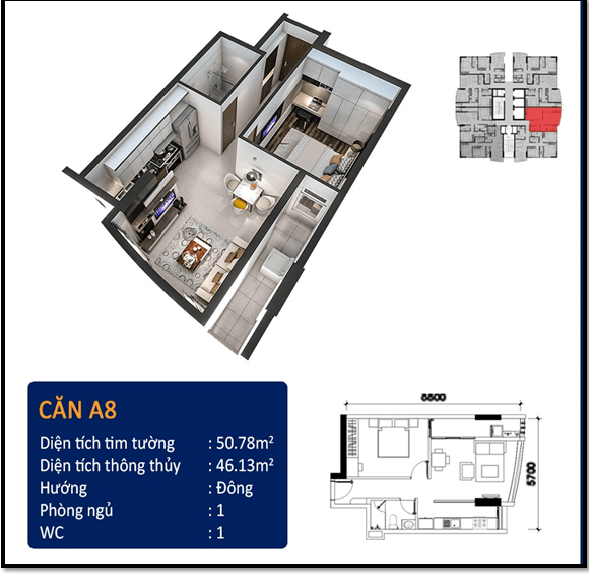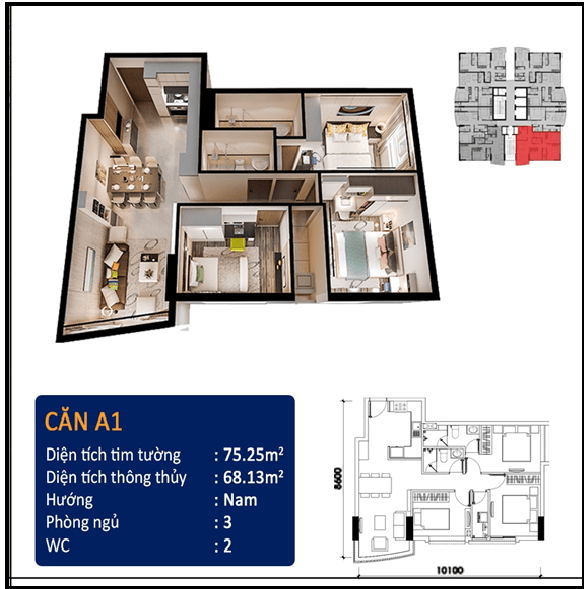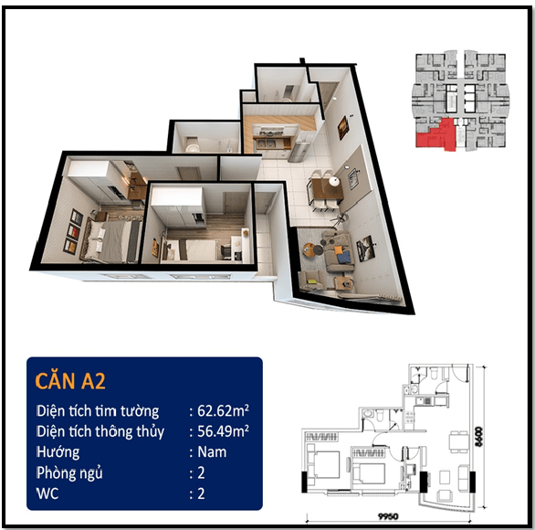 | Quy mô dự án | • 2 block, 256 căn hộ, 18 tầng |