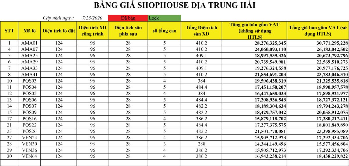 Bảng giá các căn shophouse Địa Trung Hải bên dưới chưa bao gồm các chính sách chiết khấu và ưu đãi được áp dụng hiện tại. Quý khách hàng quan tâm căn cụ thể vui lòng liên hệ hotline để được tư vấn chi tiết và nhận được đầy đủ tất cả chính sách bán hàng tốt nhất.