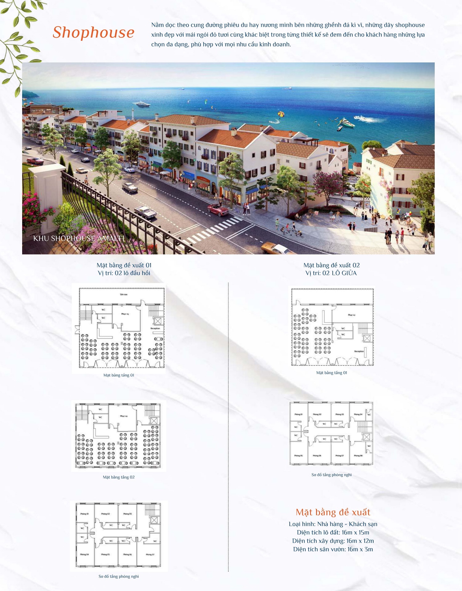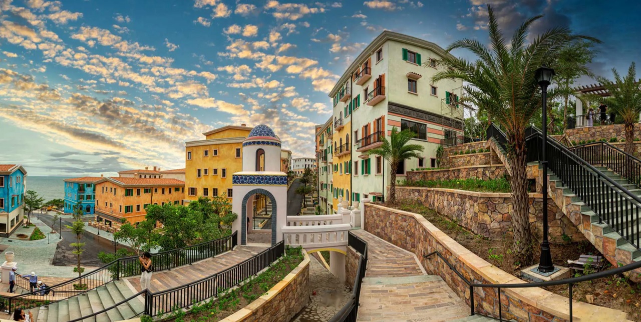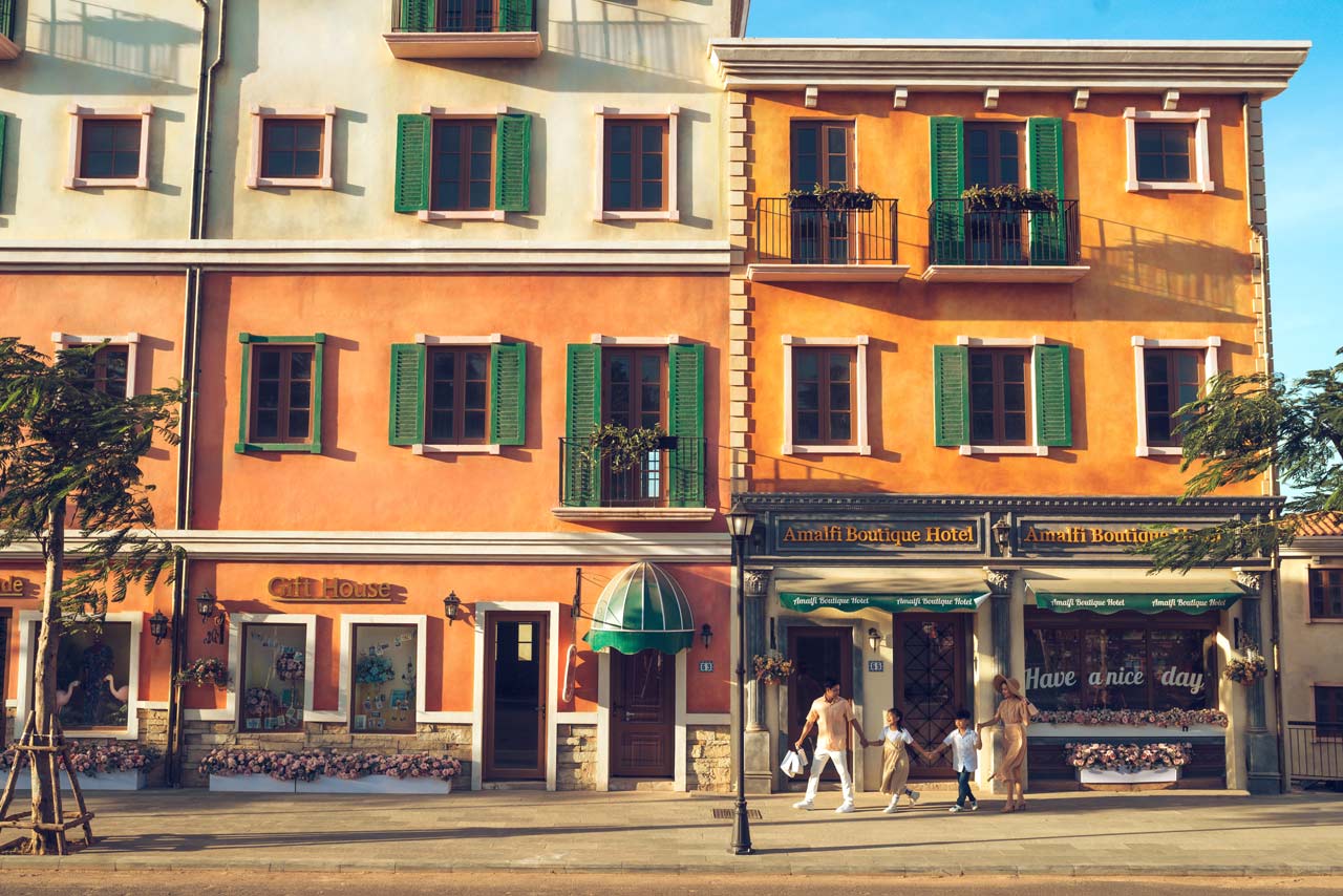 Được xây dựng trên ý tưởng về một thị trấn Amalfi lãng mạn mà phóng khoáng, trên những ghềnh đá hiểm trở ven biển, Shophouse Địa Trung Hải được xây dựng cao tầng và vô cùng màu sắc sặc sỡ, được xây dựng san sát nhau mang một cảm giác ấm cúng và phồn thịnh.