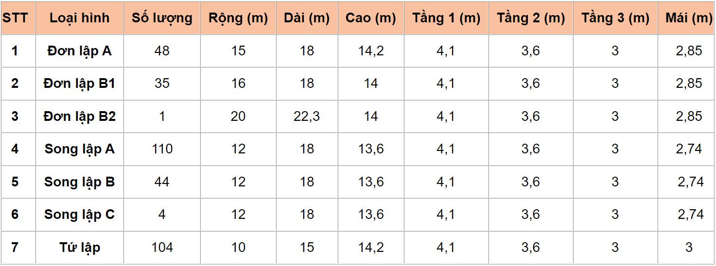 • Diện tích đất: 265 m2 – 320 m2.