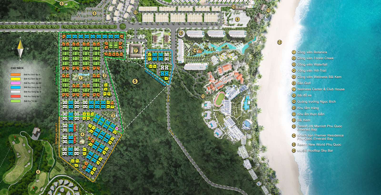 Phân khu Tropical Wellness (đường kẻ xanh dương):
