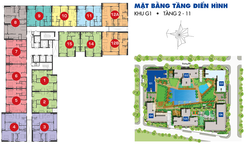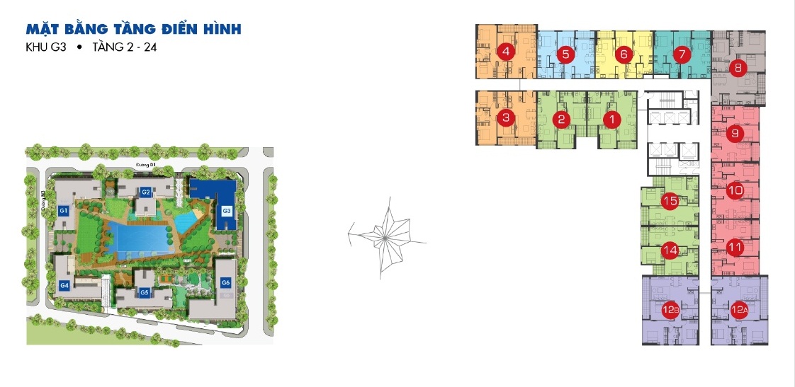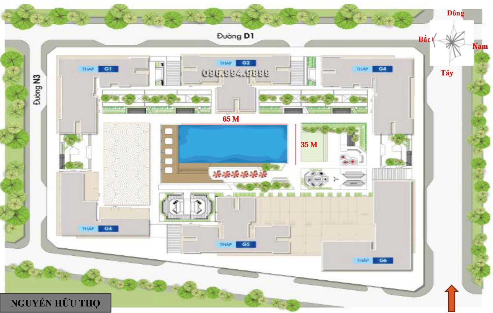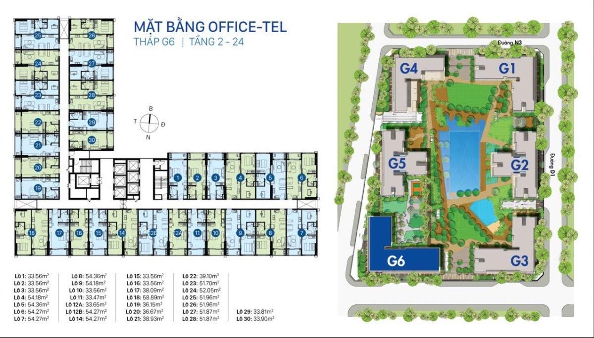 + Khu G có 6 tòa tháp được đánh số từ G1 – G6 trong đó có bao gồm cả hồ bơi cao cấp diện tích rộng tới 3000m2, độ cao 25 tầng diện tích 28.559 m2.