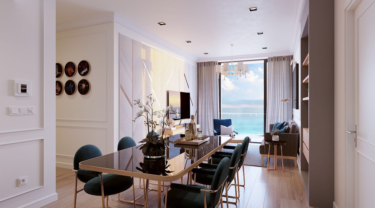 Theo đó, phòng khách sở hữu ban công dài hướng Đông hoặc Nam, đón nhận làn gió trong lành dịu nhẹ tạo cảm giác mát mẻ, dễ chịu, lãng mạn… Mặt khác hướng Đông & Nam của căn nhà cũng đón nắng ban sớm, hạn chế nắng nóng mặt trời chiếu trực diện vào buổi chiều.