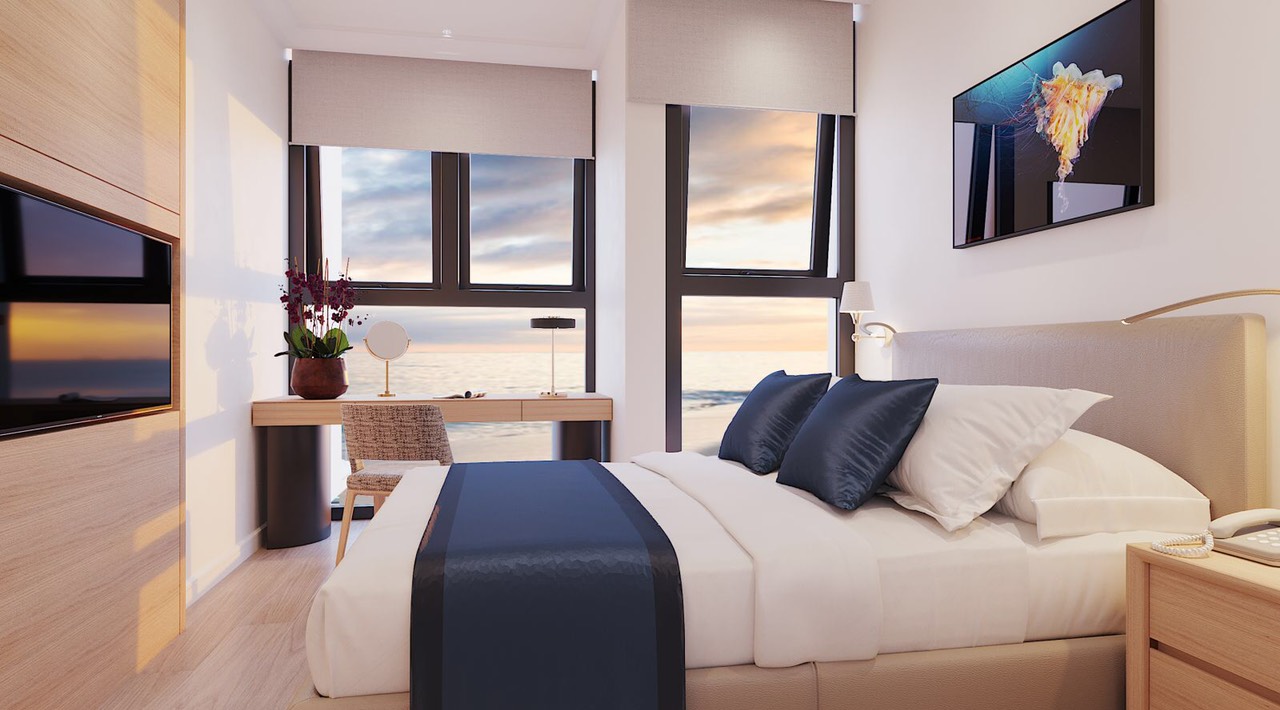Kết cấu 2 tòa tháp được sắp lệch nhau, giúp các căn hộ có thêm nhiều mặt tiếp xúc với bên ngoài, dễ dàng đón nắng & gió tự nhiên.