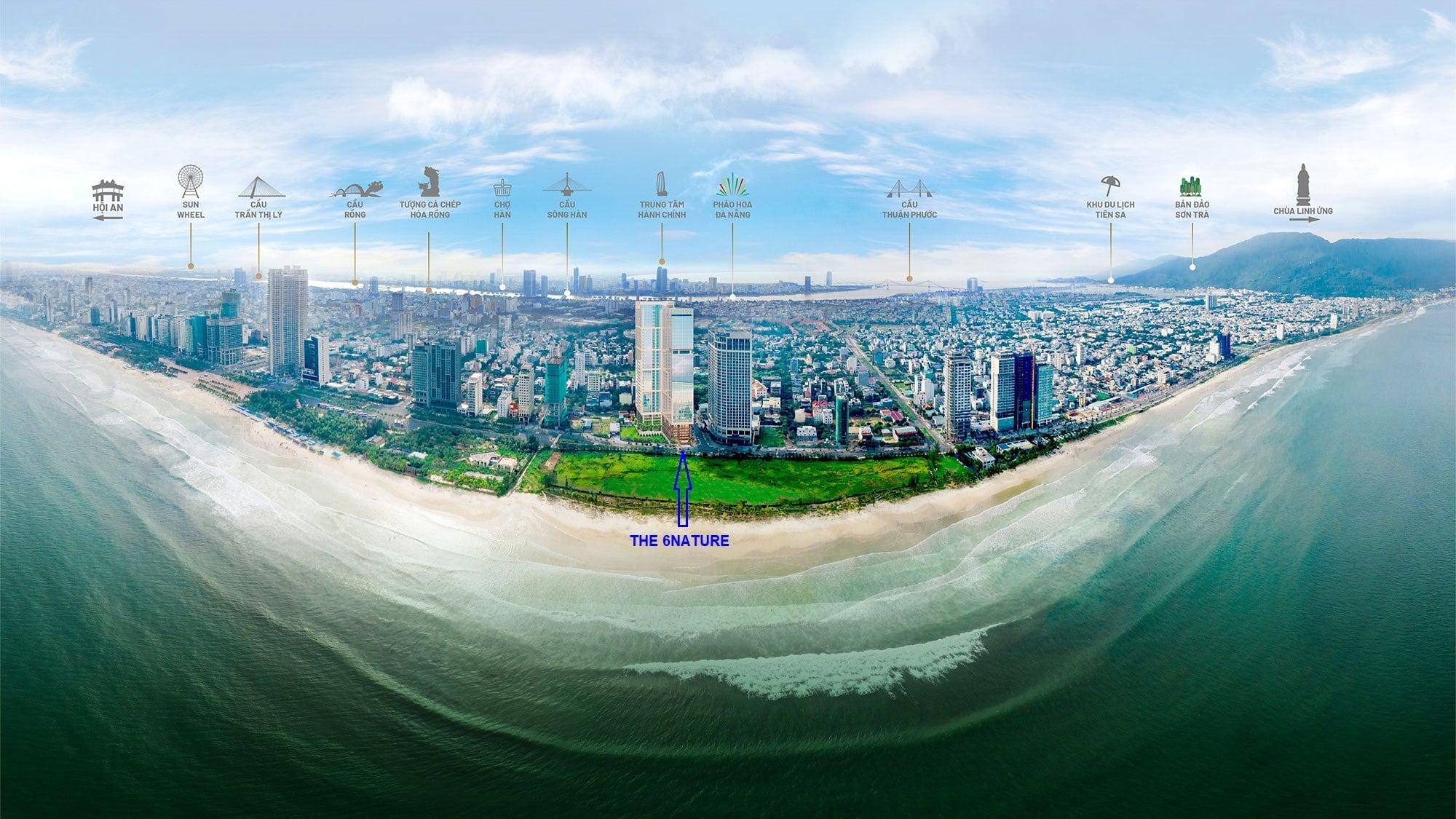 Tọa lạc tại Lô 29 – 30, Khu biệt thự Redstar, Đường Võ Nguyên Giáp, Phường Phước Mỹ, Quận Sơn Trà, Tp. Đà Nẵng, THE 6NATURE không những sở hữu vị trí đắt giá top đầu Đà Nẵng mà còn có được lợi thế gần như tuyệt đối trong phân khúc căn hộ biển.