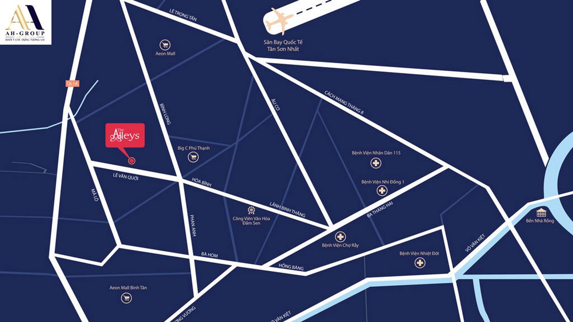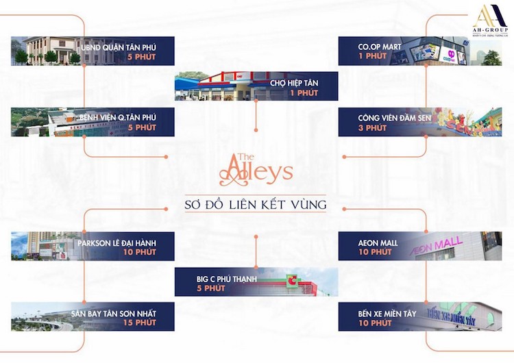 Cư dân tại dự án The Alleys Bình Tân có thể nhanh chóng kết nối đến Quốc lộ 1A, Hương lộ 2 di chuyển đến Quận 8, Bình Chánh, các tỉnh miền Tây hay di chuyển theo những tuyến đường nội thành vào trung tâm thành phố đều thuận tiện.