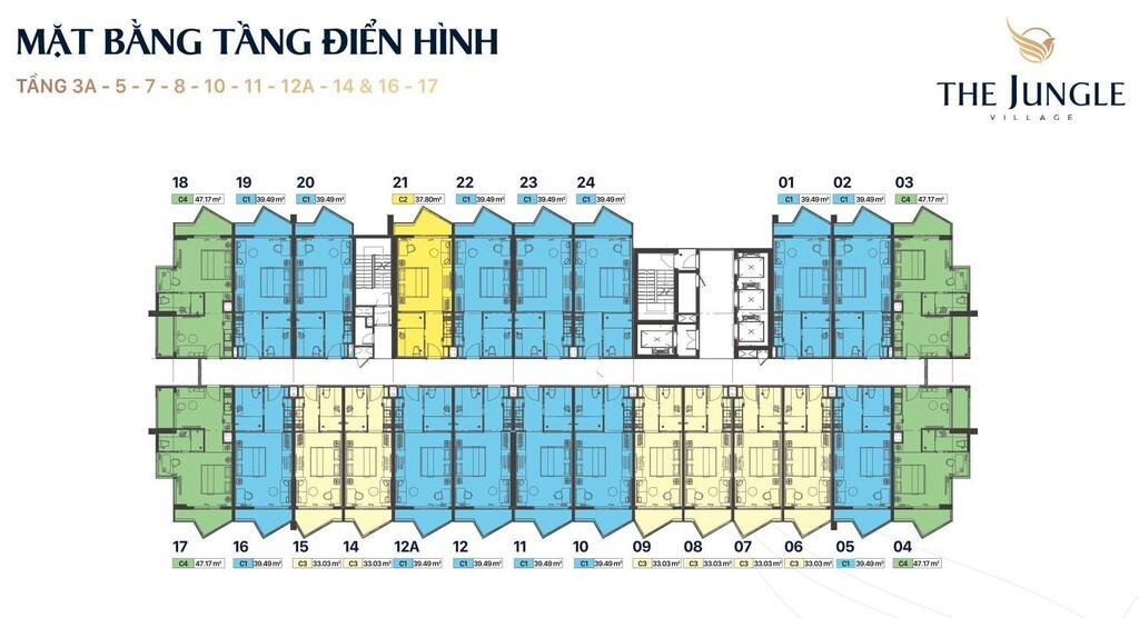 Mặt bằng Tầng 3A, 5, 7, 8, 10, 11, 12A, 14, 16,17 Căn hộ du lịch THE JUNGLE