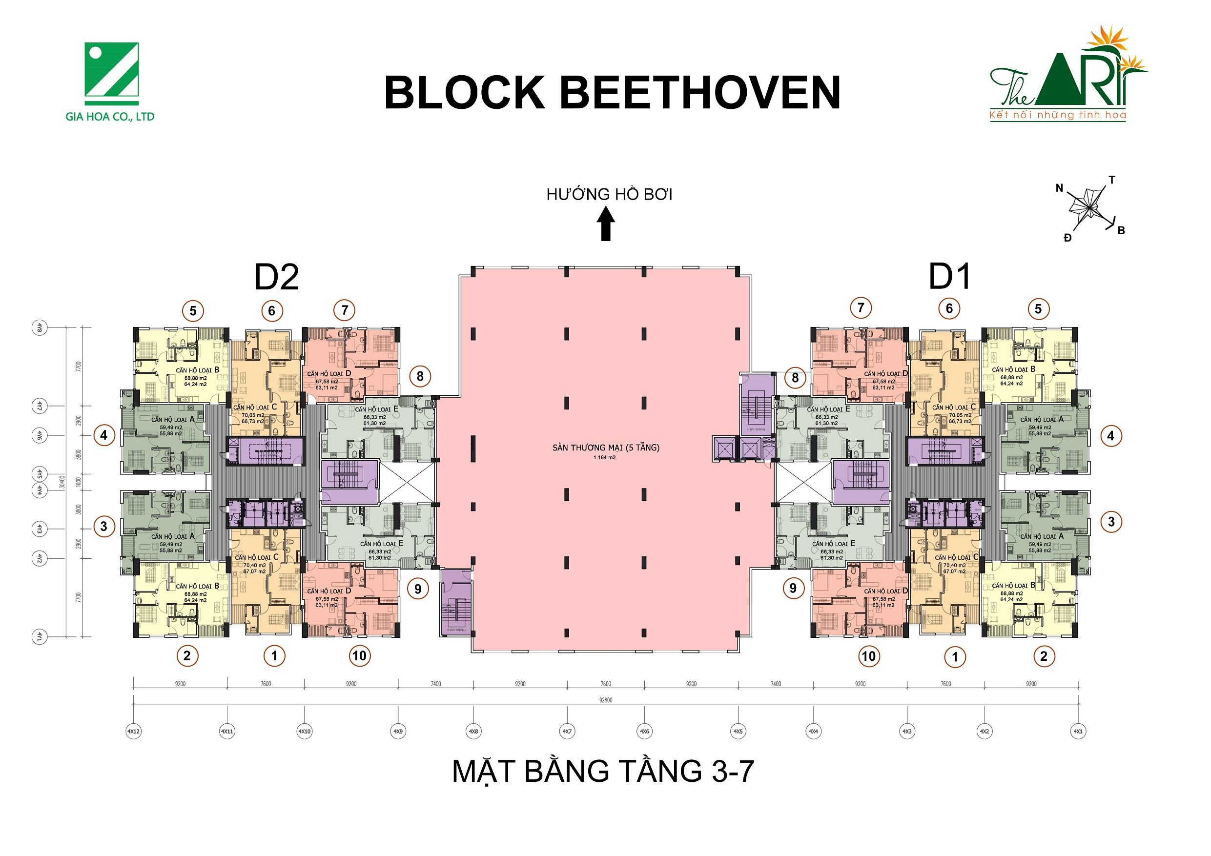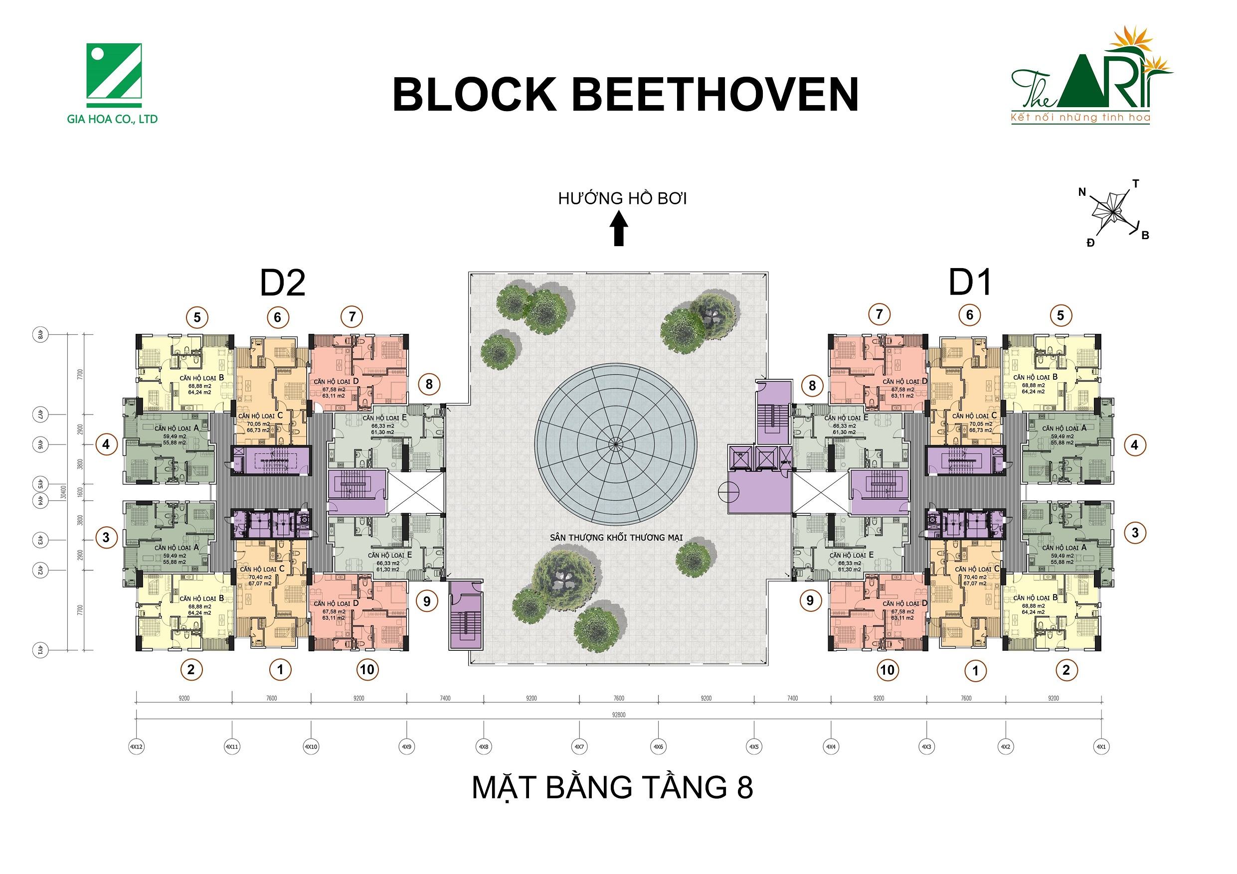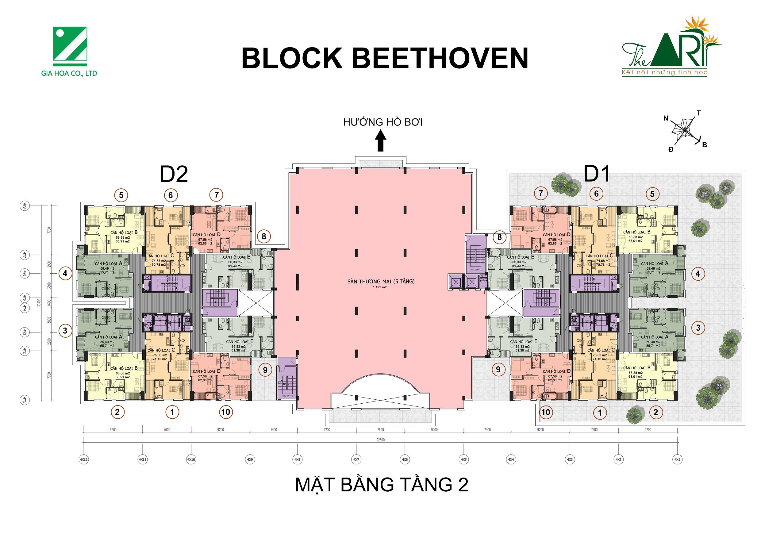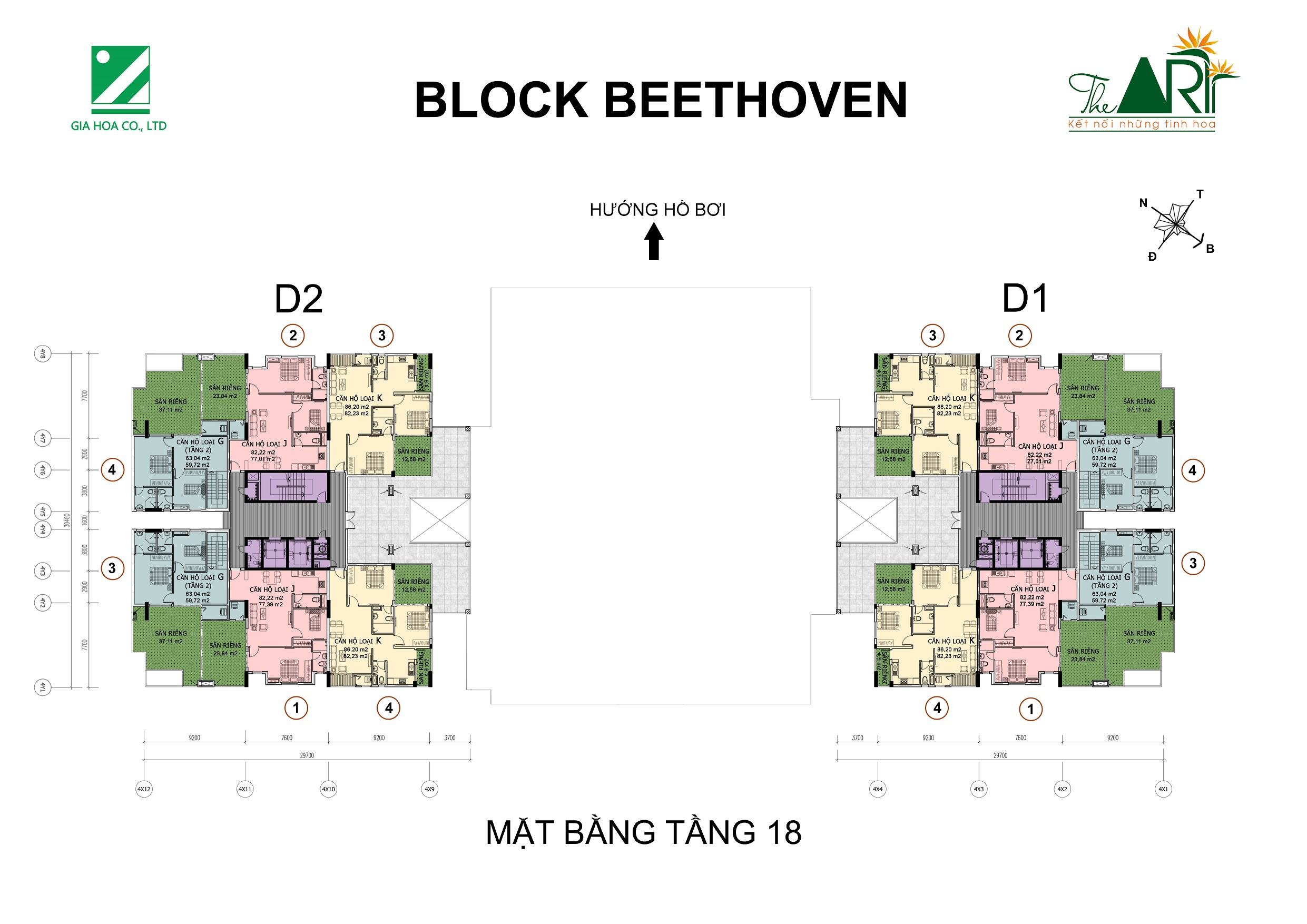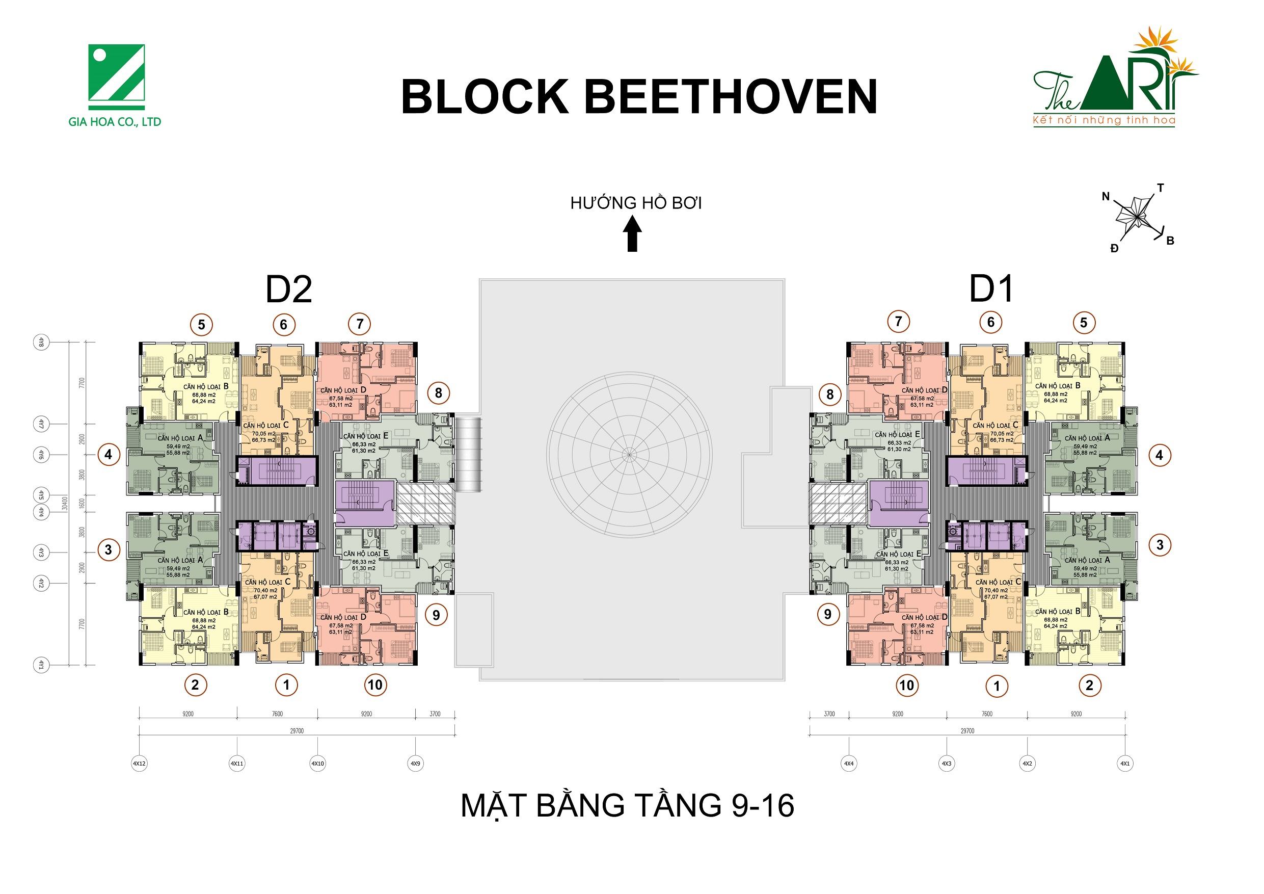 Các căn hộ có thiết kế tiện nghi, đơn giản hiện đại, phù hợp với giới trẻ năng động, mạnh mẽ. Căn hộ The Art có tổng cộng 1.711 căn hộ, gồm 01 hầm 22.000 m2, 10 tháp căn hộ cao 18 tầng và 1 tháp thương mại cao 5 tầng. Loại căn hộ 2 phòng ngủ có diện tích từ 59 m2 – 70 m2; loại 3 phòng ngủ và penthouse thông tầng có diện tích từ 128 – 144 m2. Tất cả đều có thiết kế sang trọng, hiện đại và tiện nghi. Dưới đây là một sô mẫu căn hộ có thiết kế 2 PN.