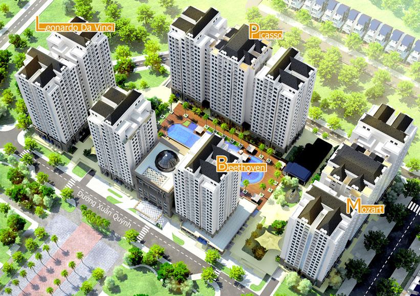 | Quy mô dự án | gồm 4 Block với 10 khối tháp căn hộ cao từ 7 – 18 tầng |