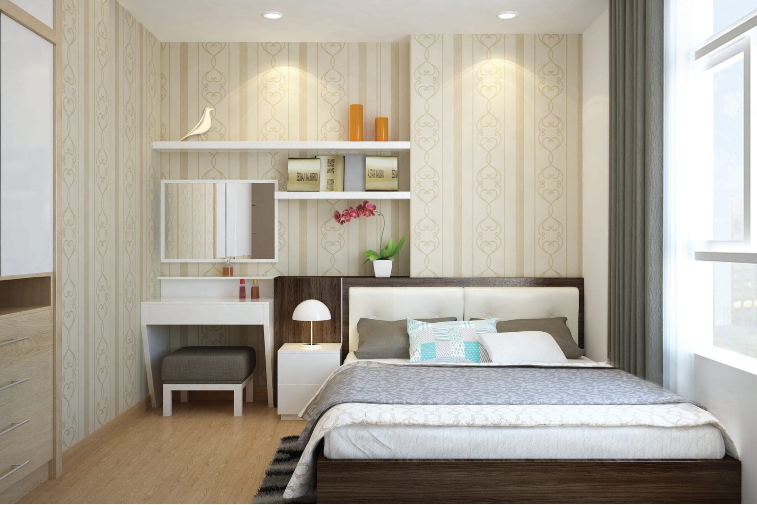 Nội thất phòng ngủ nhỏ bố trí các khu vực chứa đồ ngay trong gầm giường được thiết kế liền khối. Tránh trường hợp thiết kế vụn vặt sẽ tạo ra các góc dư thừa làm xấu đi tính thẫm mĩ trong nội thất căn hộ.