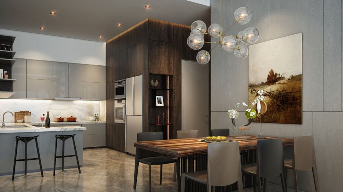 Nội thất bàn giao căn hộ The Art. Nhằm tri ân khách hàng, chủ đầu tư quyết định khuyến mãi cho các khách hàng thanh toán căn hộ một bộ tủ bếp trên và hệ thống đèn