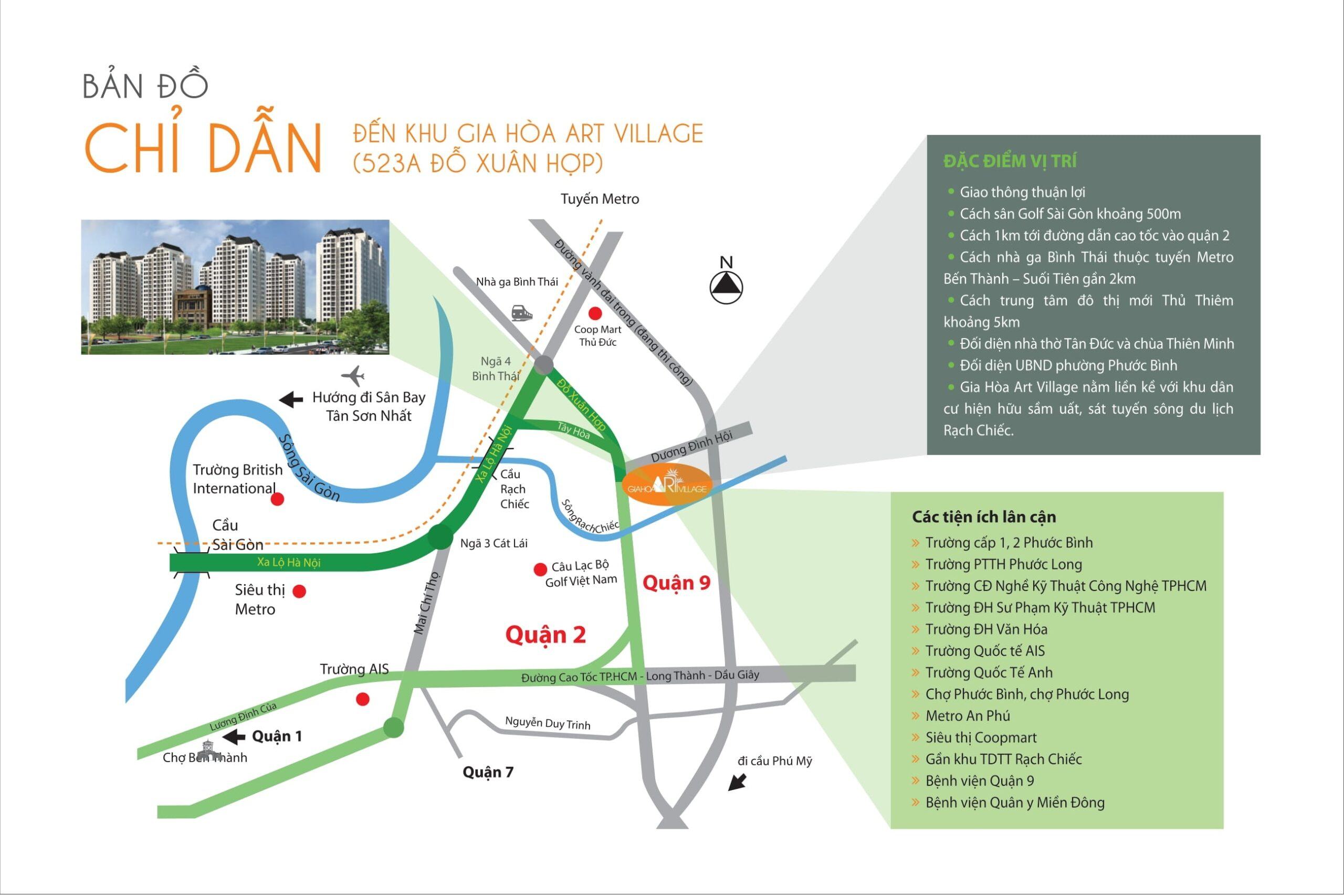 Nằm biệt lập trong khu dân cư Gia Hòa, chung cư The Art có không gian sống xung quanh rất thư thái, an nhiên. Các trục đường nội khu bao bọc dự án cũng là các trục đường lớn, tầm 12 – 30m. Kế bên chung cư The Art là khu công viên nội khu với các khu thể thao ngoài trời, và đường dạo bộ bờ sông Rạch Chiếc.