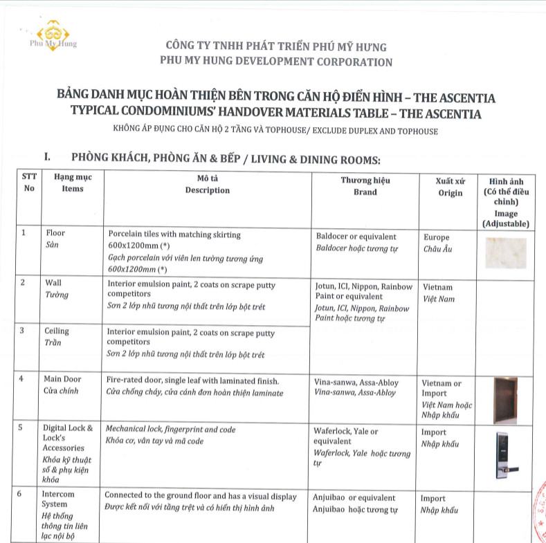 Nội thất bàn giao căn hộ The Ascentia được chủ đầu tư chọn lựa từ những vật liệu nổi tiếng hàng đầu thế giới, chất lượng bàn giao chuẩn cao cấp,…đem lại sự tiện nghi và sang trọng cho căn hộ The Ascentia quận 7.