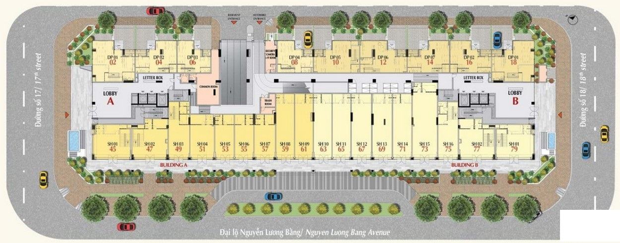 Mặt bằng chi tiết tầng Trệt dự án căn hộ The Ascentia