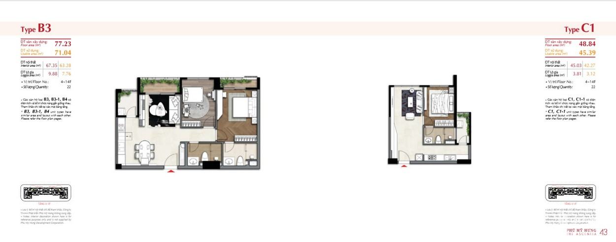 Mặt bằng chi tiết căn hộ The Ascentia được cập nhật mới nhất từ chủ đầu tư với đa dạng các loại diện tích khác nhau, đáp ứng đầy đủ nhu cầu sinh hoạt và các không gian phòng ốc tập thể đầy đủ tiện nghi. Đa dạng diện tích từ 55m2 – hơn 200m2. Chi tiết cho ta thấy rõ bố cục của các căn hộ, đáp ứng view đẹp cho 100% căn hộ. Đạt tiêu chuẩn xây dựng của các căn hộ quân 7.