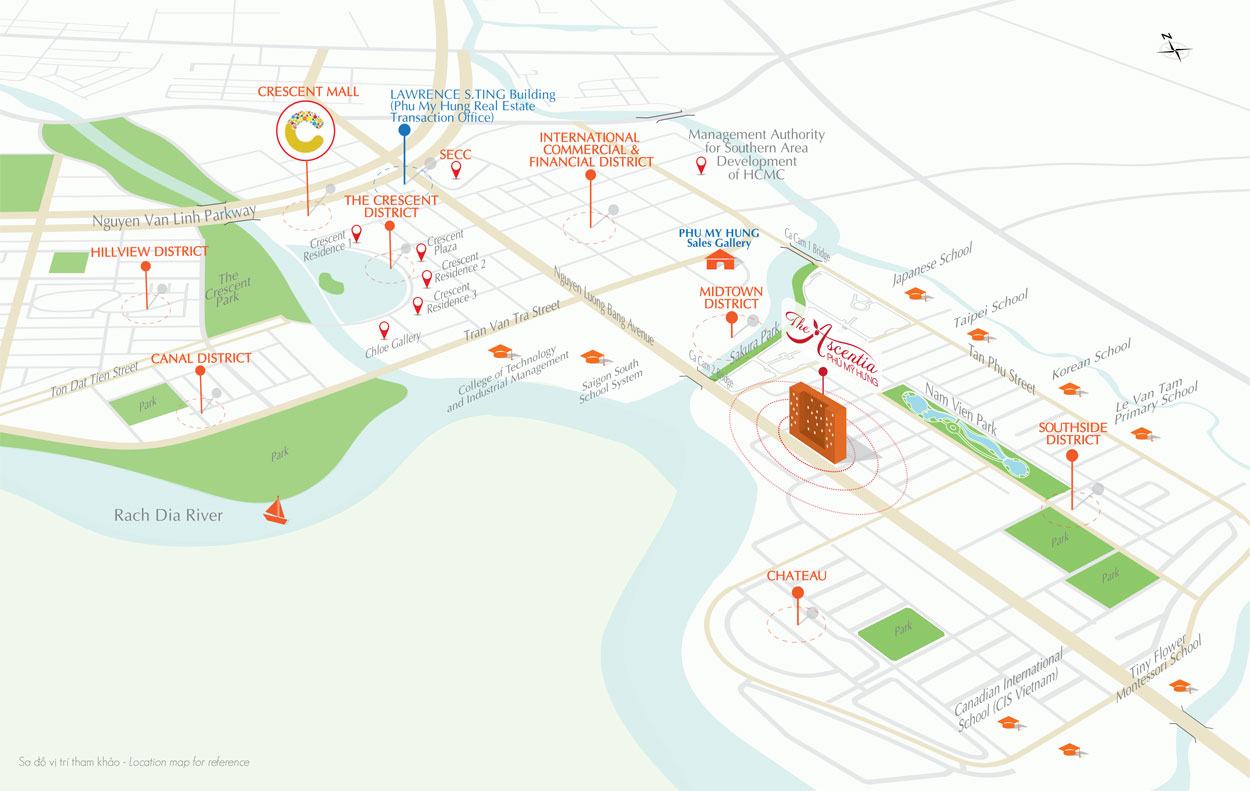 Vị trí địa chỉ dự án căn hộ The Ascentia tọa lạc nơi “bán đảo xanh” Nam Viên, nằm ngay mặt tiền trục đường Nguyễn Lương Bằng sầm uất, kết nối trực tiếp với biệt thự Lâu đài Chateau & khu phức hợp Midtown, The Ascentia sẽ là nơi nâng tầm vị thế cho chủ nhân – những doanh nhân trẻ, năng động, sáng tạo và thành đạt.