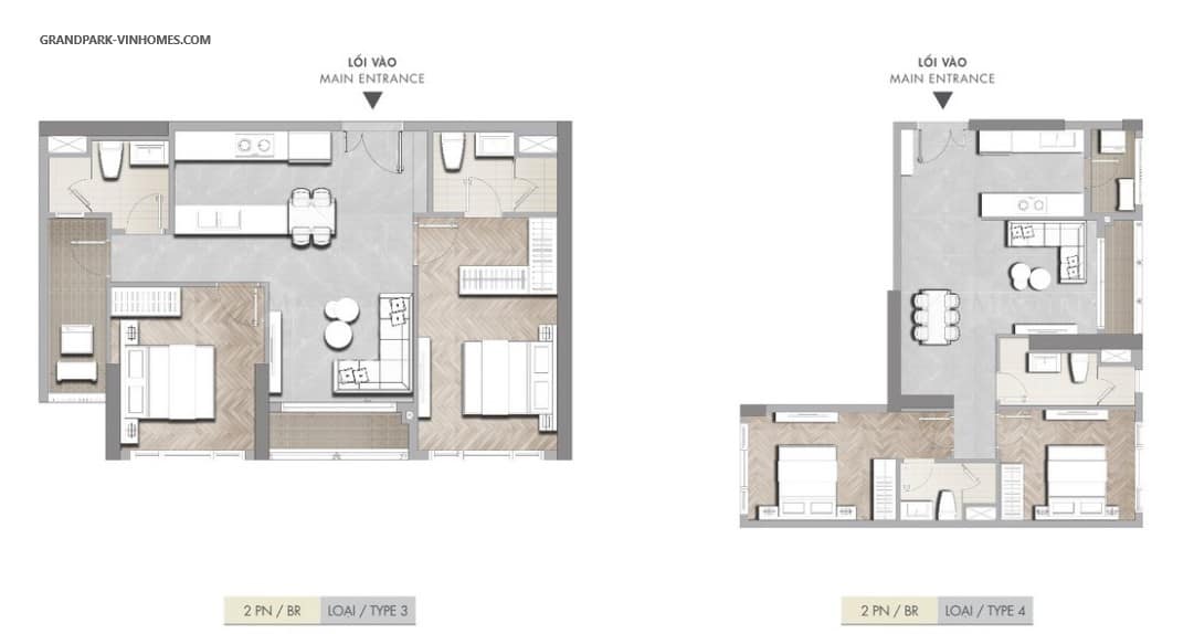 Thiết kế căn 2 phòng ngủ