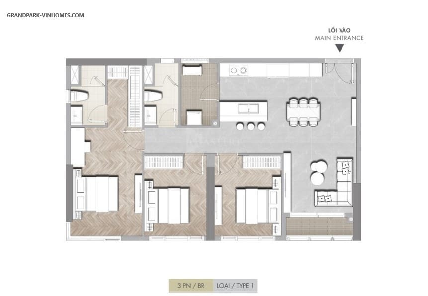 Thiết kế căn 3 phòng ngủ