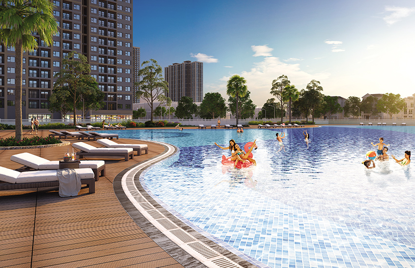 Chỉ 1 bước chân từ sảnh căn hộ, cư dân có thể thư thái cảm nhận không khí trong lành mặt hồ lớn trung tâm với những bờ cát trắng mịn và rặng dừa xanh trải dài, cùng với đó đặc quyền riêng của cư dân Căn Hộ The Beverly hồ bơi nước mặn theo phong cách resort mời gọi cư dân và gia đình thỏa thích tắm biển mỗi ngày.