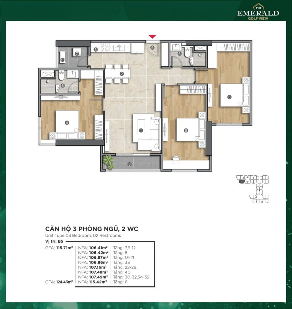 Khu căn hộ The Emerald Golf View được ví như một khu phức hợp với đầy đủ tiện ích đẳng cấp 5 sao: Sảnh đón Emerald, hệ thống trung tâm thương mại, hồ bơi vô cực, hồ bơi trẻ em, Family lounge, thư viện, nhà trẻ, khu BBQ, khu vui chơi trẻ em, khu café, rạp chiếu phim nghệ thuật ngoài trời, khu Gym, Spa, khu vườn treo thư giãn trên không, vườn chân mây… toàn bộ gói gọn trong 1 nút chạm thang máy, mang đến cho khách hàng một không gian sinh hoạt và thư giãn lí tưởng.