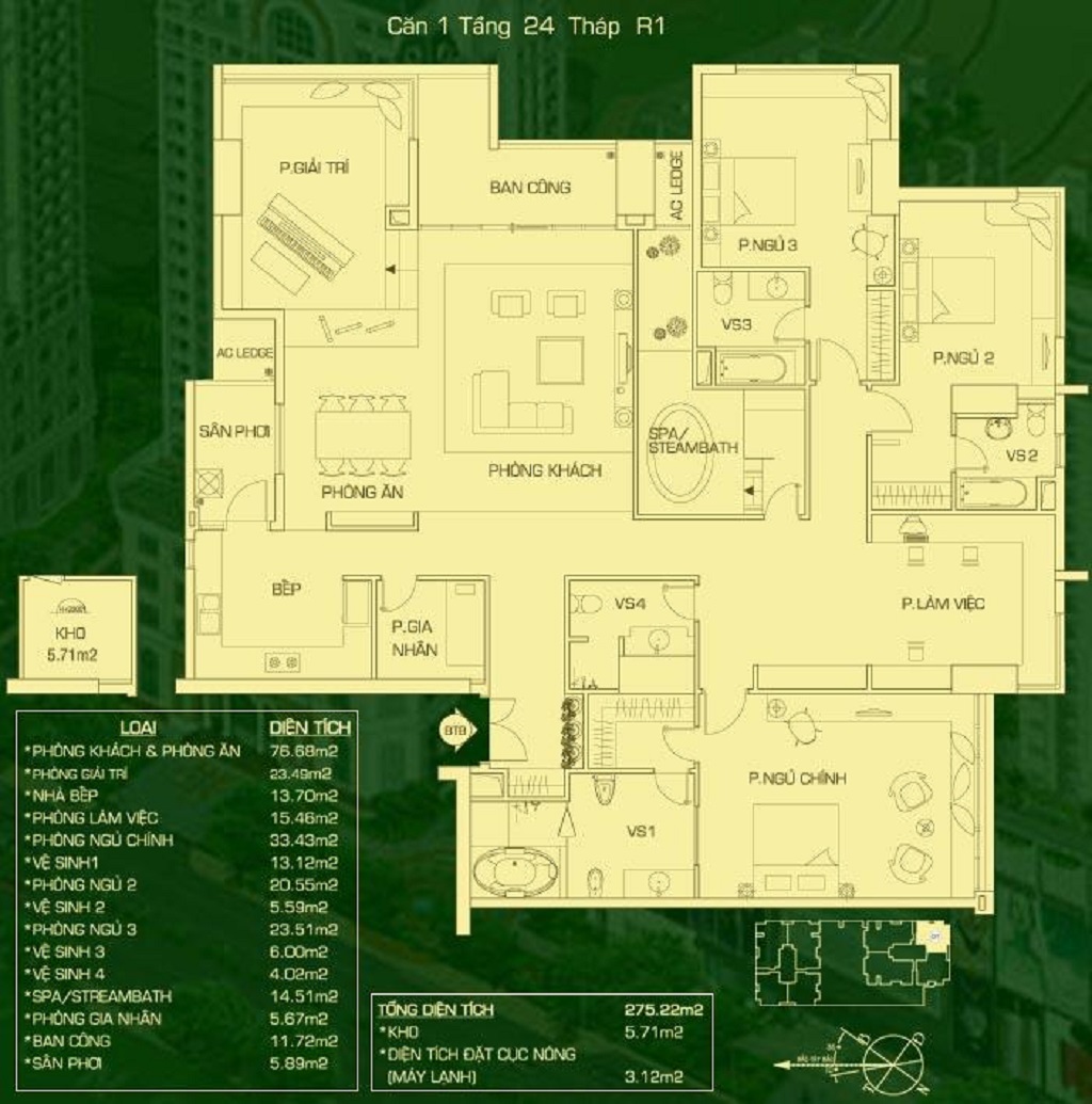 + Căn hộ Luxury: 275 m2 – 389 m2, có thiết kế 3PN + 1 phòng gia nhân