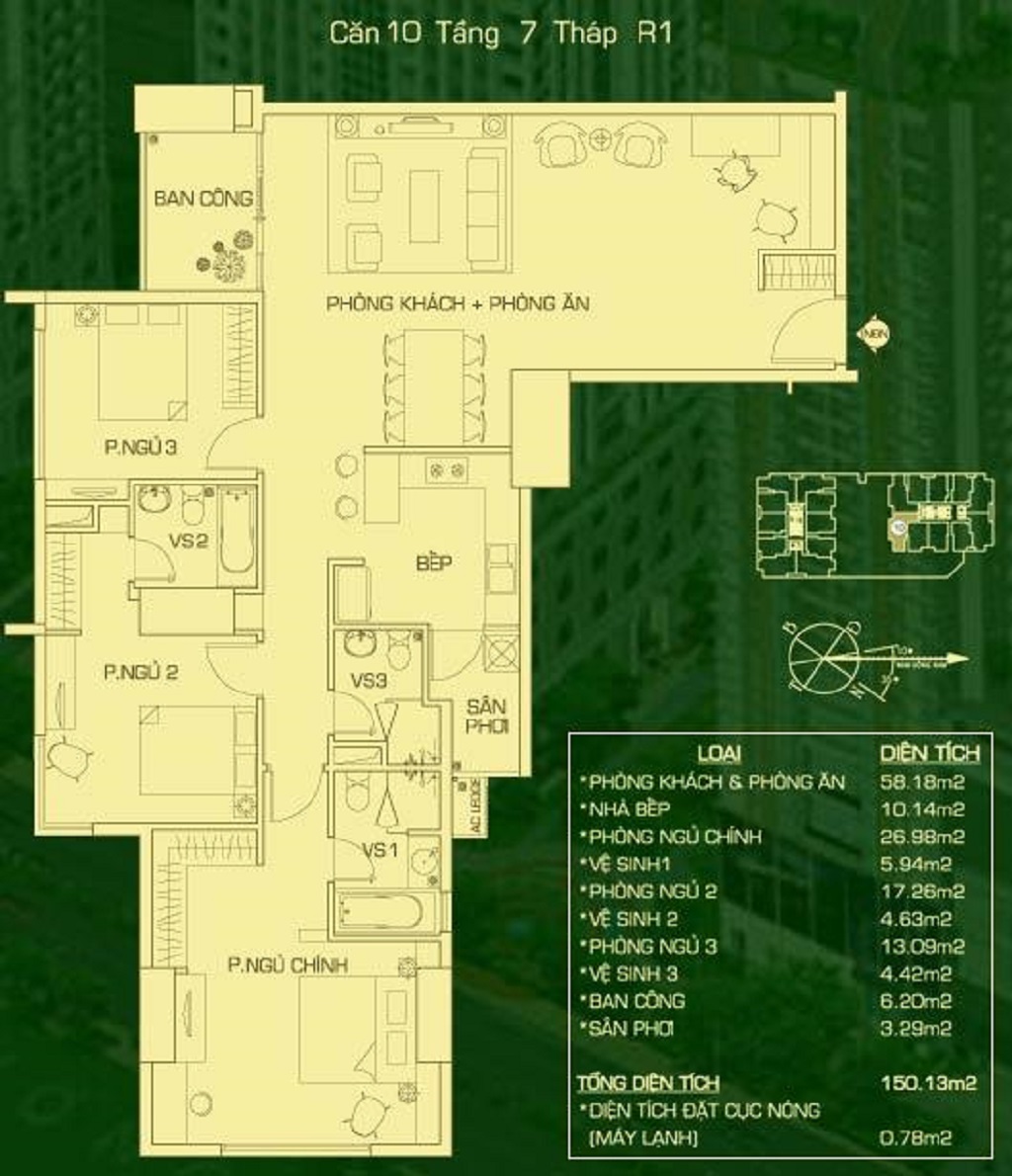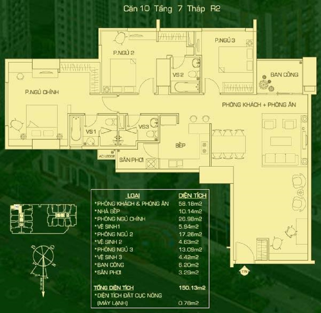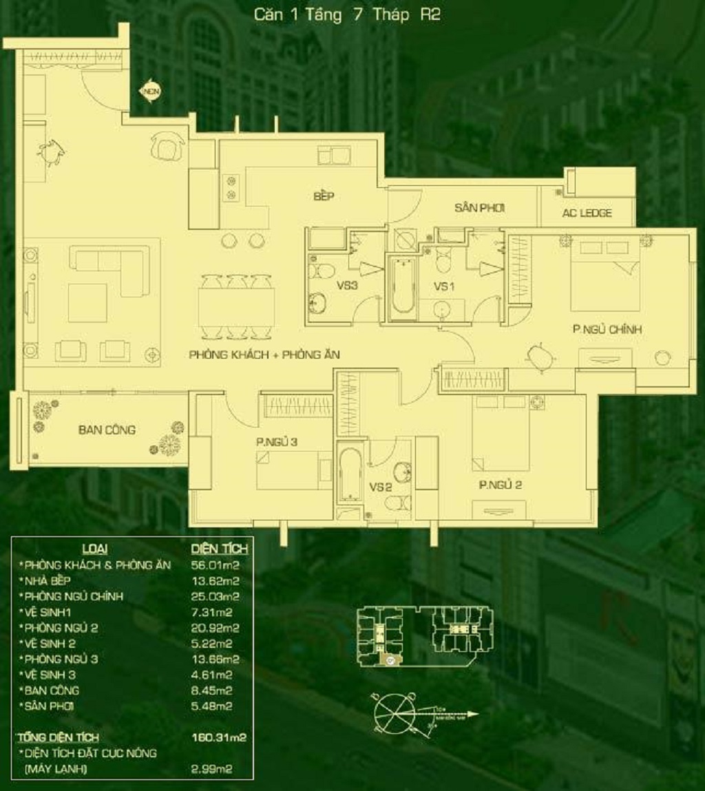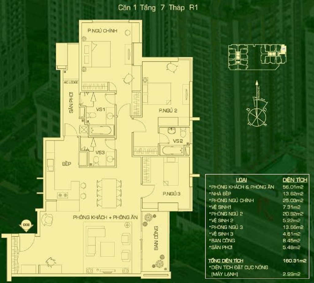 + Căn hộ 3 PN: 150 m2 – 160 m2