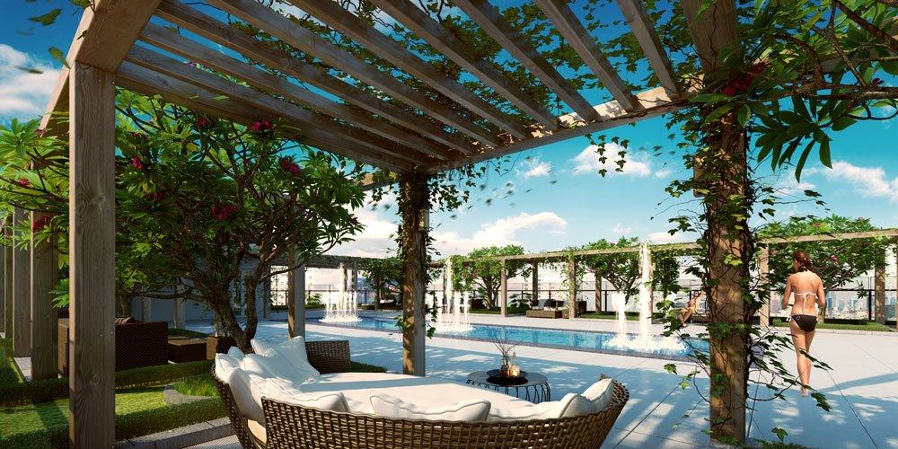 | Tiện ích dự án | Trung tâm thương mại, dịch vụ Khu vui chơi trẻ em Hồ bơi tiêu chuẩn Vườn treo Đài phun nước |