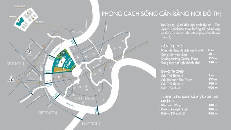 The Metropole Thủ Thiêm là tổ hợp căn hộ – khách sạn – văn phòng – TTTM hạng sang thứ 3 được xây dựng tại bán đảo Thủ Thiêm sau KDT Sala và dự án Empire City. Dự án được xây dựng trên quỹ đất rộng 7.6 héc ta, nằm ngay tại Khu chức năng số 1 của Bán đảo Thủ Thiêm, đây là một trong những vị trí kim cương của Bán đảo Thủ Thiêm, kết nối nhanh nhất với trung tâm Quận 1 qua cầu Thủ Thiêm 2, tầm nhìn panorama trực tiếp ra sông Sài Gòn và hệ thống tiện ích đẳng cấp của các khu chức năng lân cận. Không cần đến quá nhiều yếu tố, chỉ cần với vị trí như vậy The Metropole Thủ Thiêm cũng đã khẳng định được đẳng cấp hàng đầu mình.