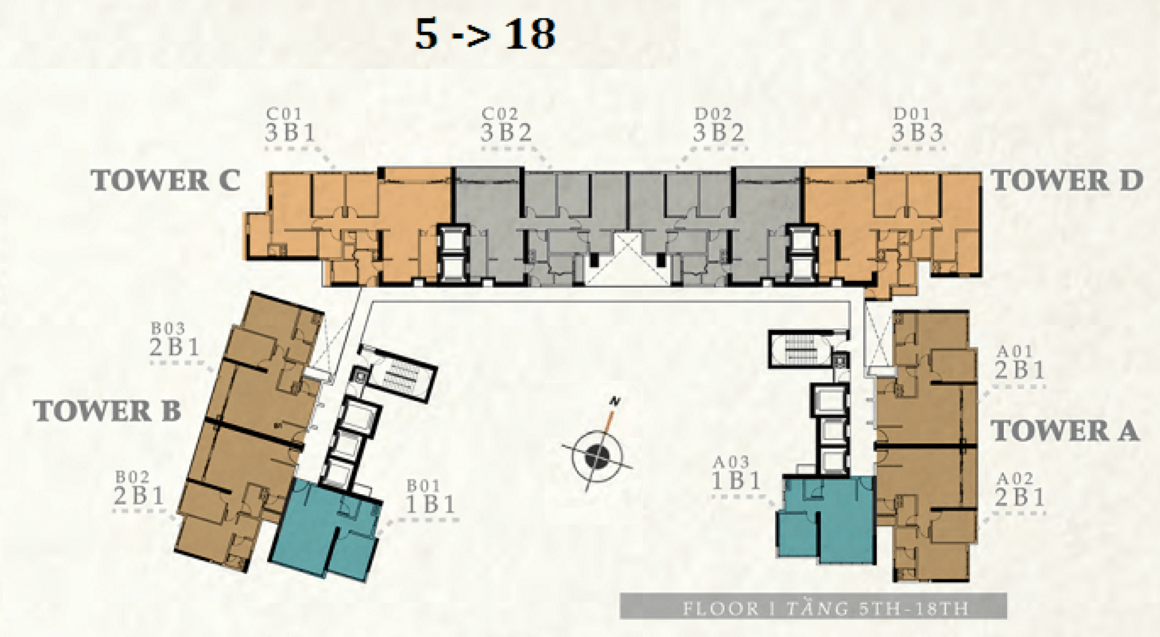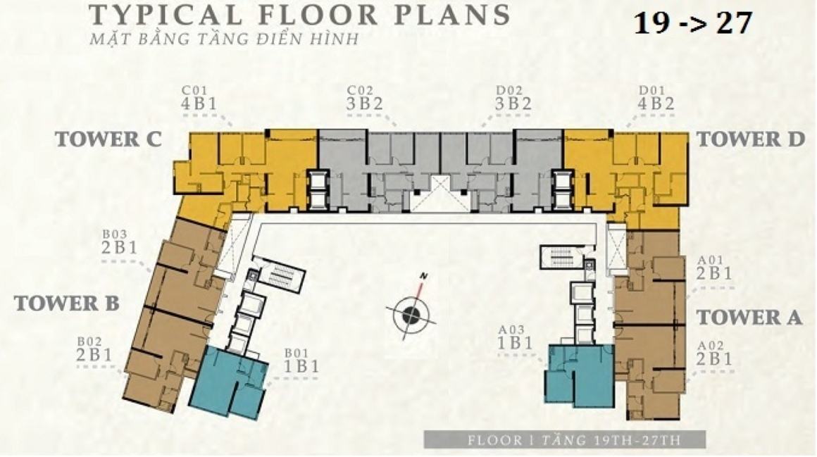 • 4 tòa tháp cao 30 tầng • 238 sản phẩm căn hộ (1-4 PN, duplex, penthouse) |