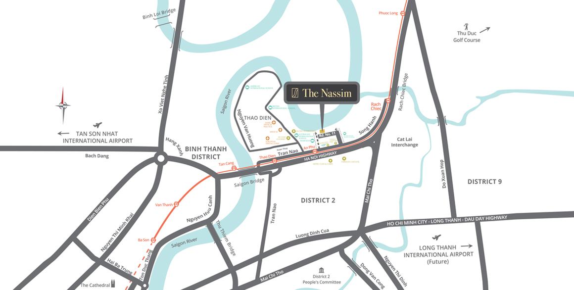 Dự án khu đô thị cao cấp The Nassim Thảo Điền tọa lạc tại quỹ đất quy hoạch trung tâm tiềm năng tại địa chỉ số 30 Đường 11, Thảo Điền, TP. Thủ Đức. Liền kề với tuyến Metro số 1 Bến Thành – Suối Tiên, kế cạnh trục cao tốc Song Hành và tầm nhìn hướng ra sông Sài Gòn là điểm sáng tạo nên một điểm nhấn trên bầu trời Thảo Điền.