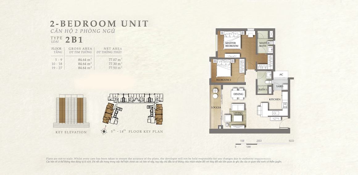 2 phòng ngủ: 85m2, giá từ 5.8 tỷ VND