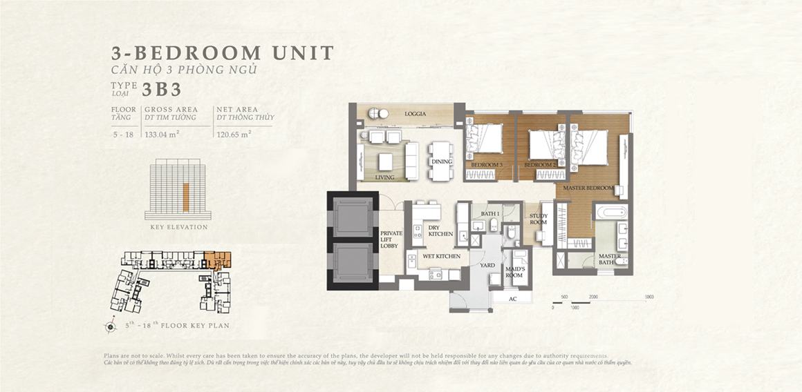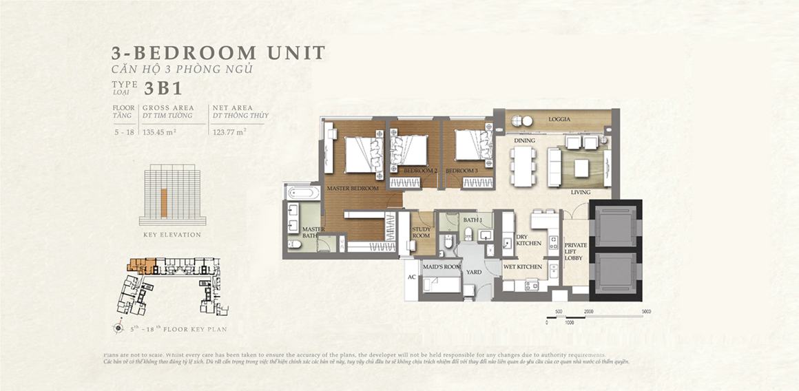 Căn hộ 3PN có diện tích trung bình: 119 – 135 m2