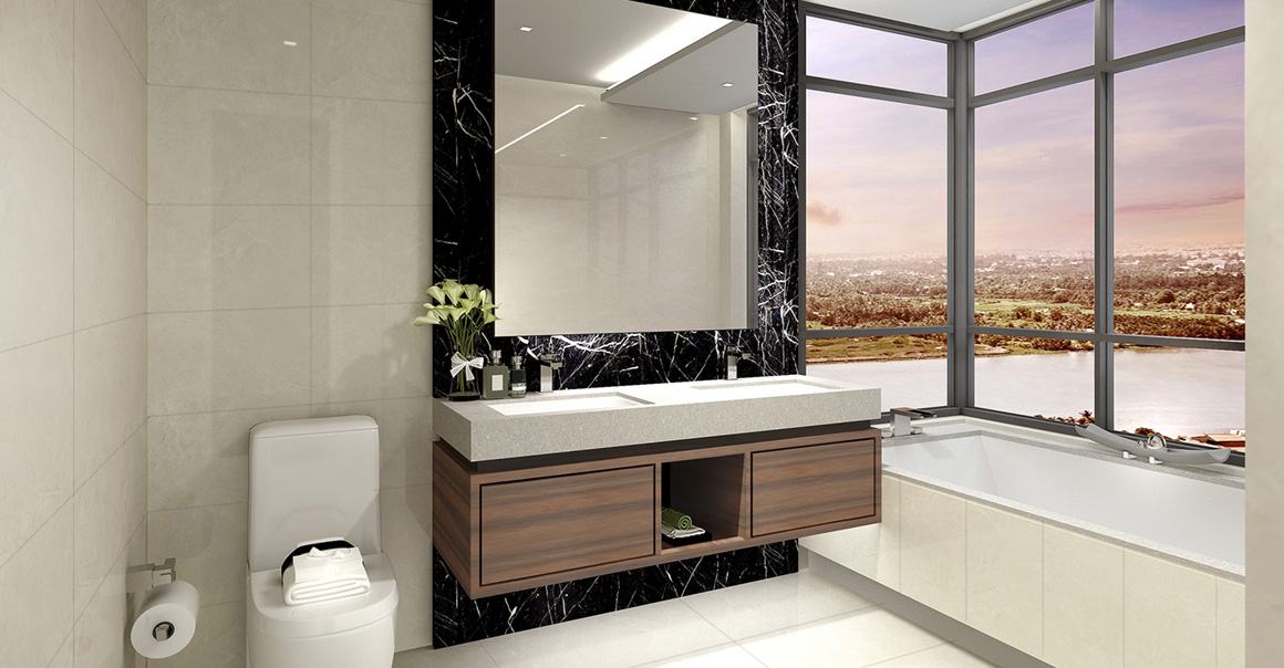 – Phòng tắm được trang bị thiết bị vệ sinh và các phụ kiện của hãng Duravit/Hansgrohe