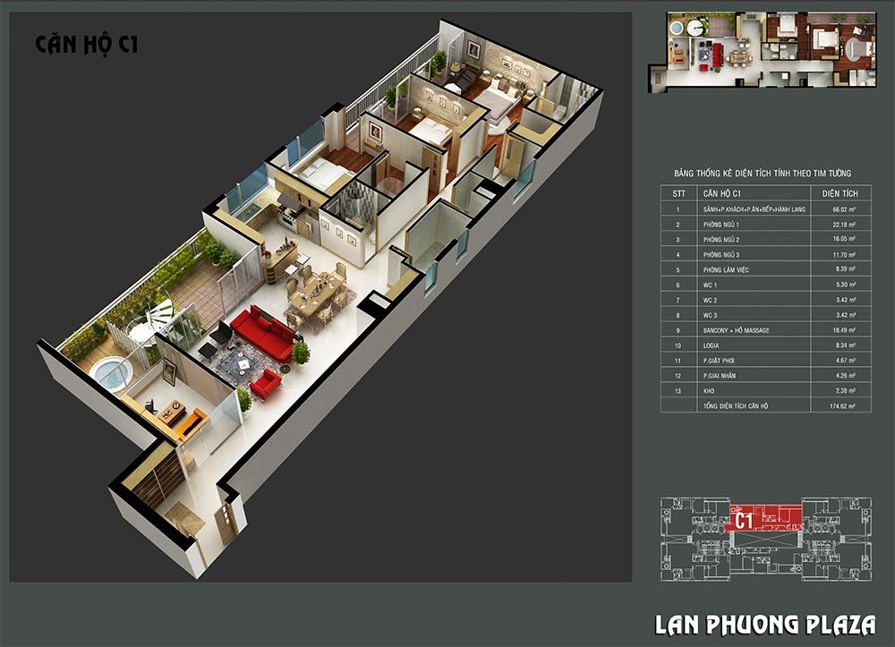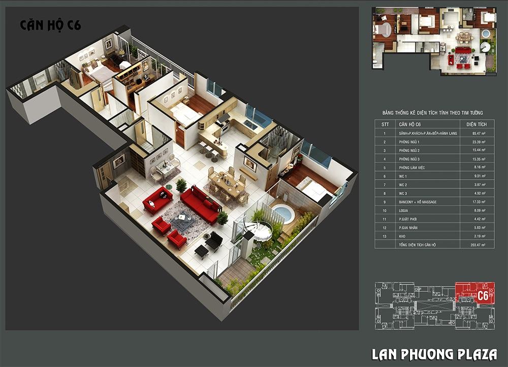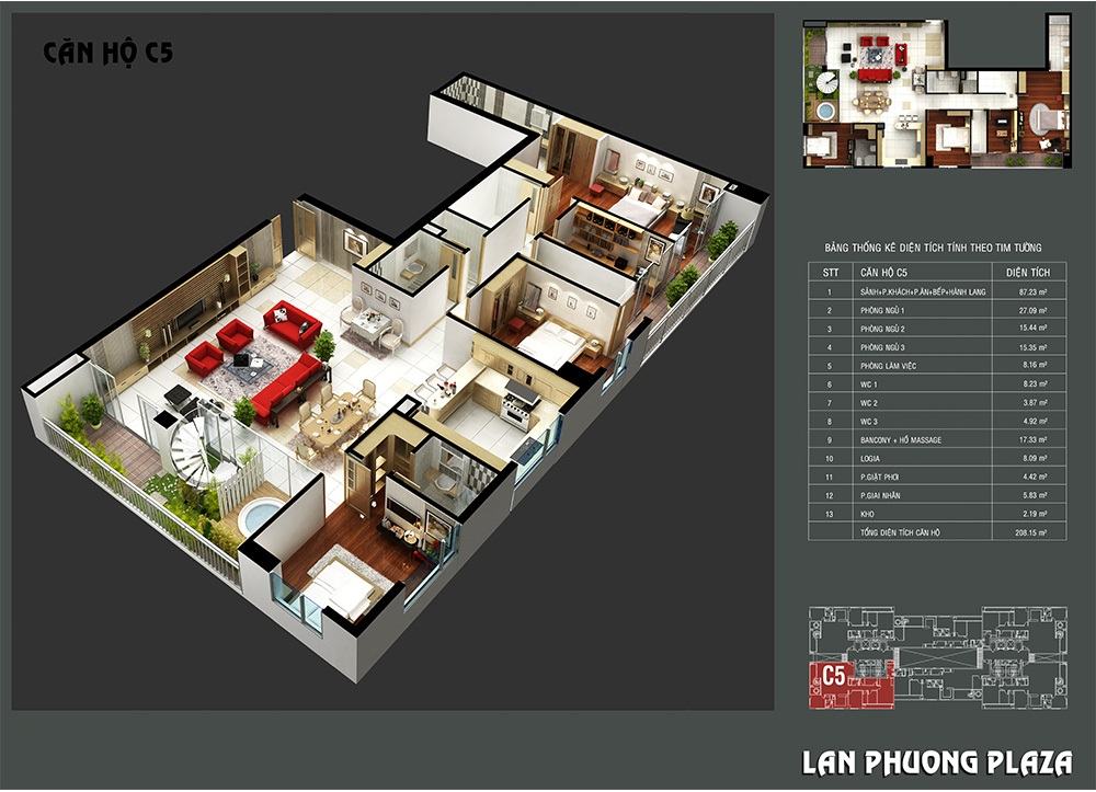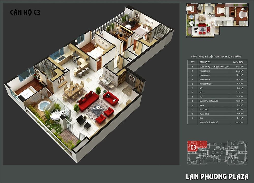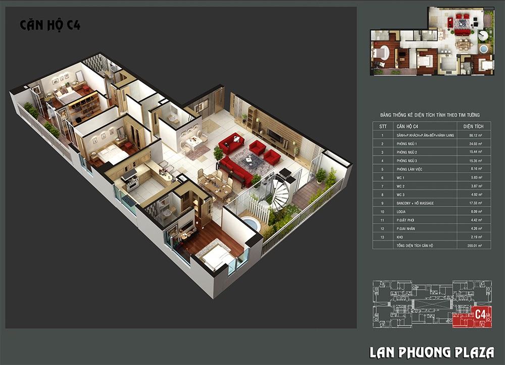• Penthouse là mô hình nhà ở lớn nhất có cả phần sân thượng riêng cho gia đình, diện tích khoảng 209m2.