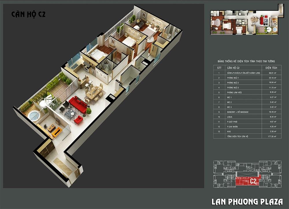 • Các căn hộ lớn hơn có thiết kế 3 phòng ngủ diện tích khoảng 110,7m2