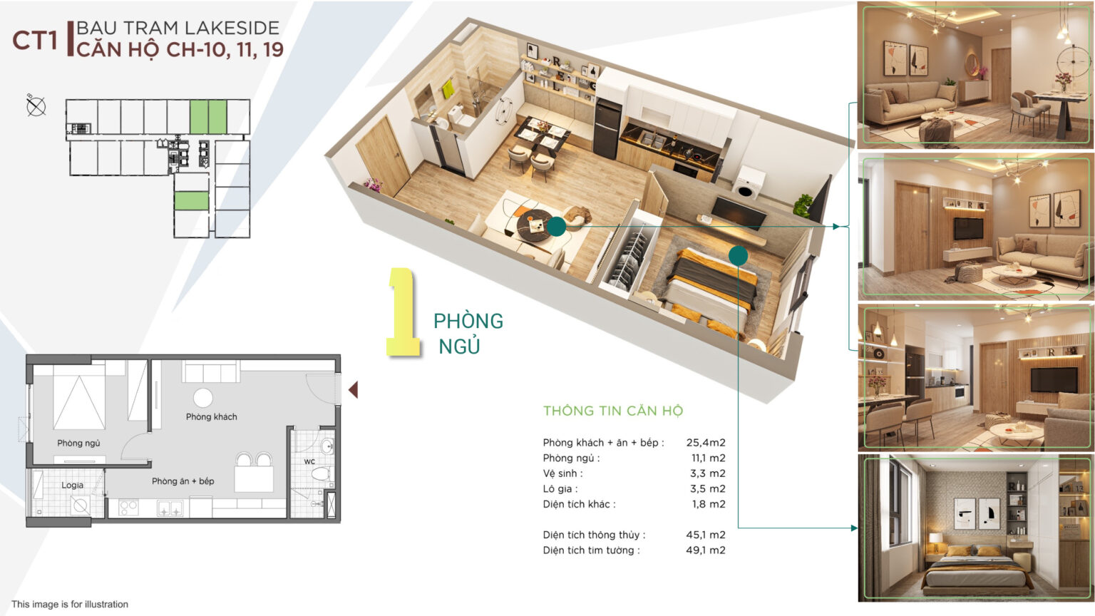 Thiết kế căn 1 phòng ngủ