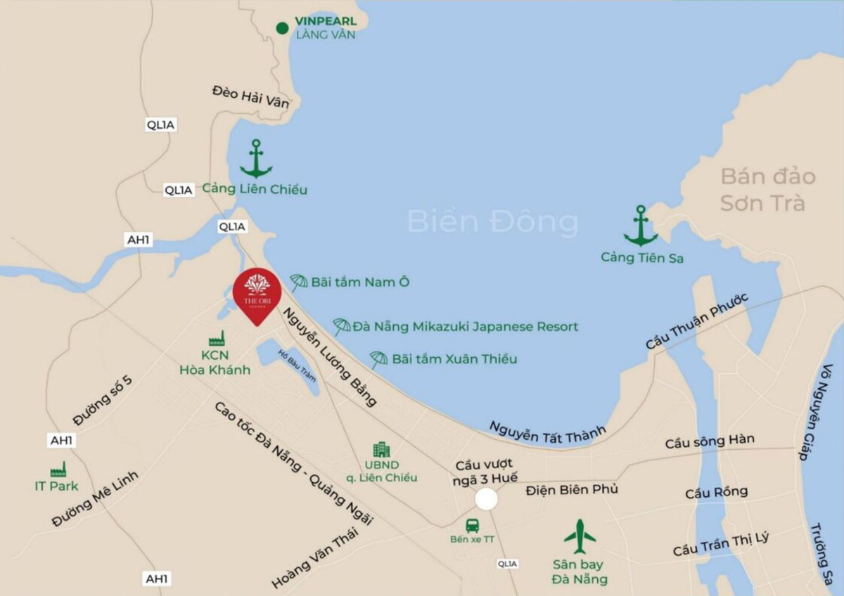 The Ori Garden tọa lạc tại tâm điểm khu đô thị mới Tây Bắc Đà Nẵng, dự án có vị trí tại Lô B4-1 và B4-2 thuộc khu đô thị xanh Bàu Tràm Lakeside, đường Mê Linh, Phường Hòa Hiệp Nam, Quận Liên Chiểu, TP Đà Nẵng.