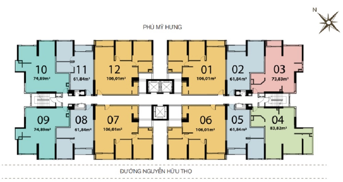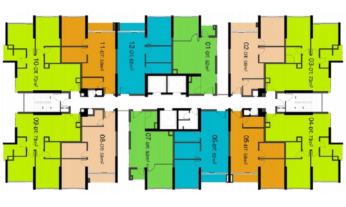 • Mỗi sàn có 12 căn hộ , 3 thang máy