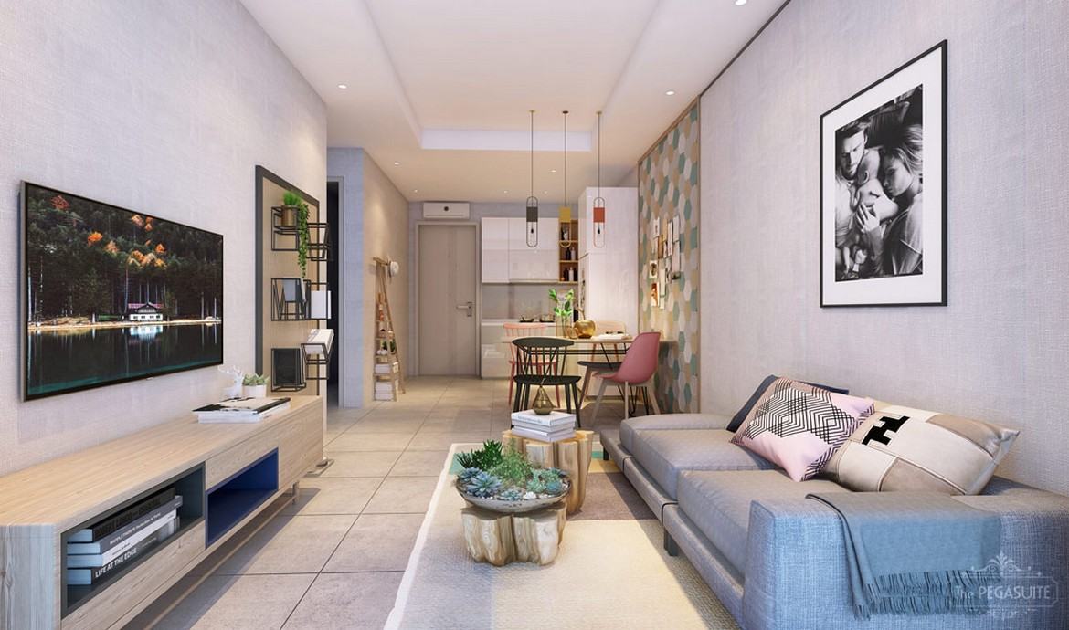 Nội thất dự án Căn hộ The PegaSuite Quận 8 hoàn thiện đầy đủ: Hệ thống trần thạch cao cao cấp, chiếu sáng, tủ kệ bếp trên dưới, hệ thống sàn gỗ, toilet đầy đủ các thiết bị cao cấp, hiện đại …