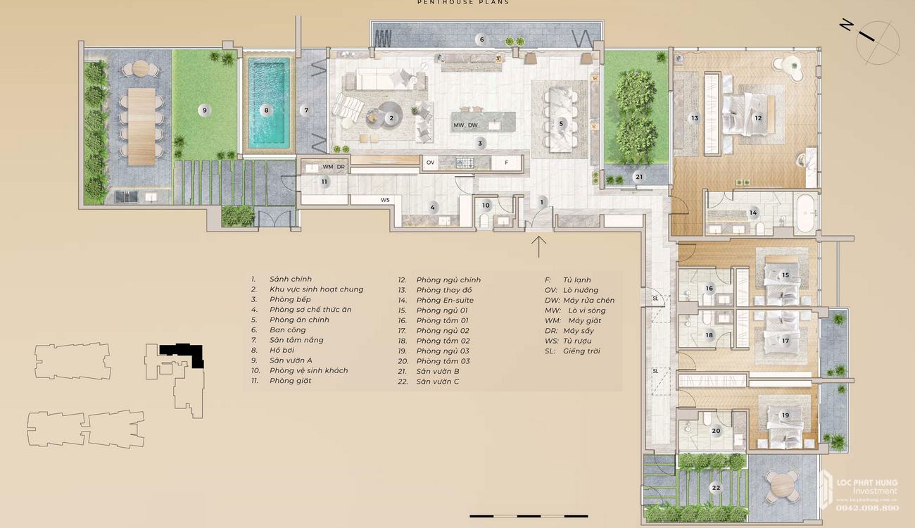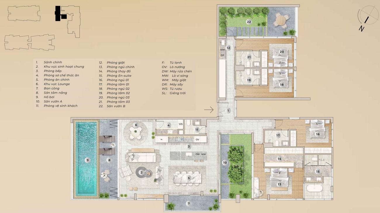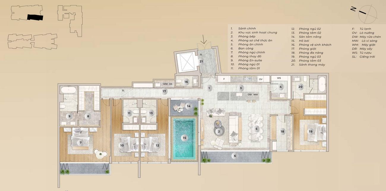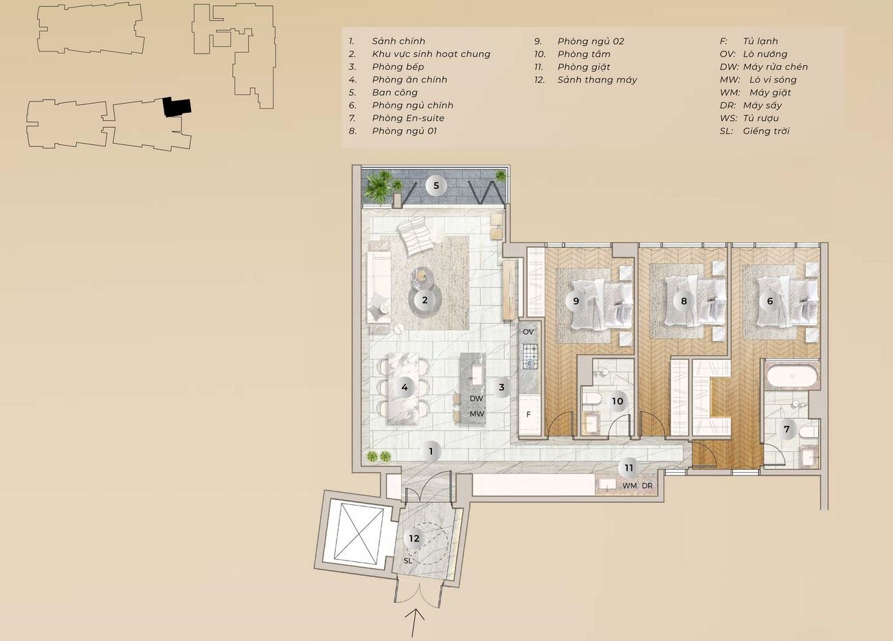 • Căn hộ loại 3 Phòng ngủ (140m2): 16 tỷ – 17.5 tỷ
