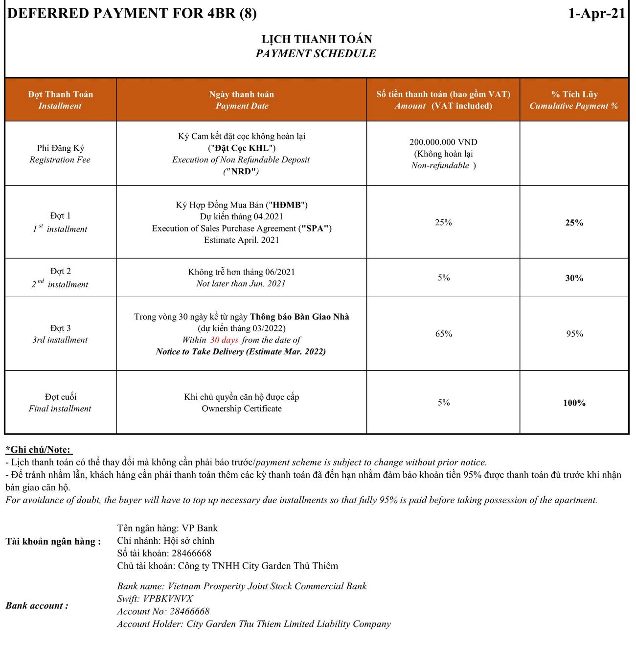 BẢNG GIÁ VÀ PHƯƠNG THỨC THANH TOÁN THE RIVER THỦ THIÊM