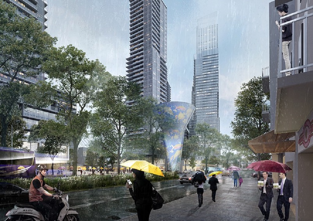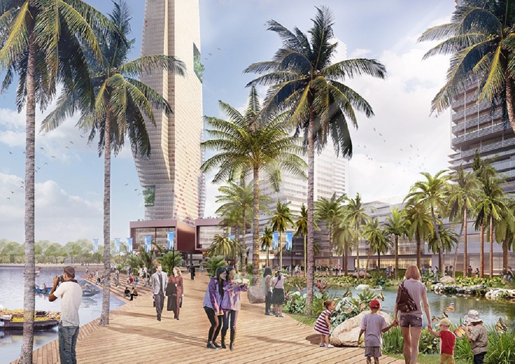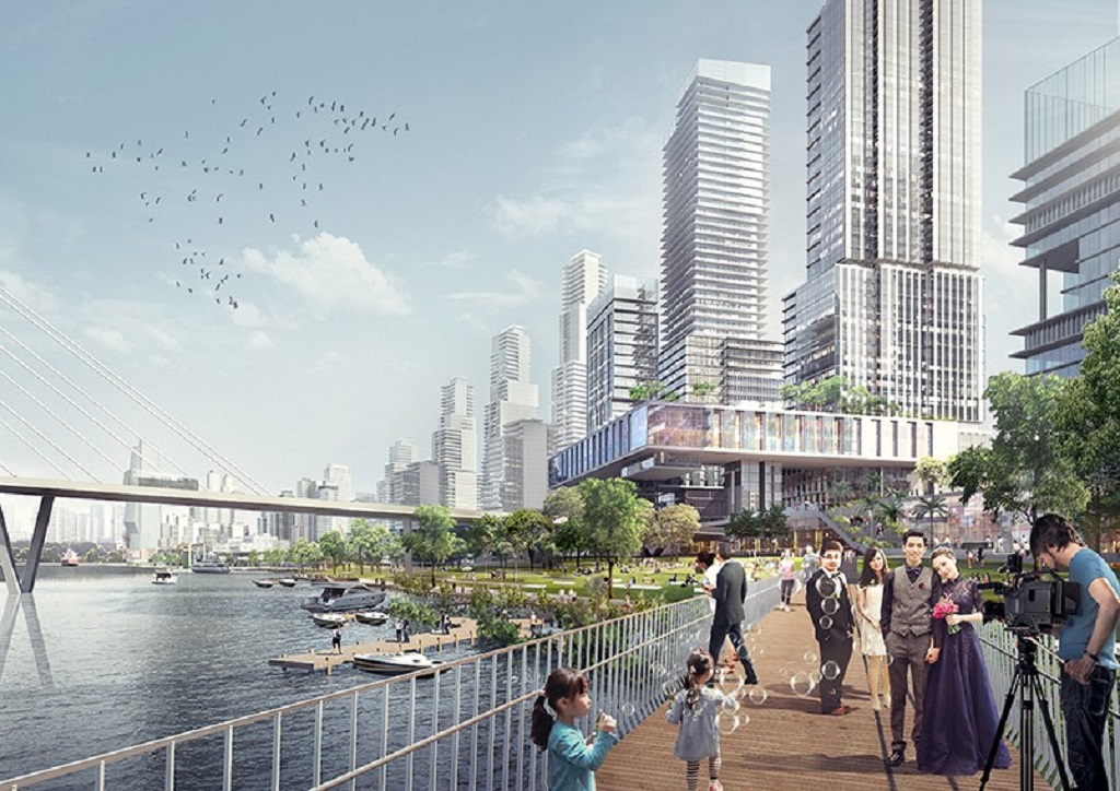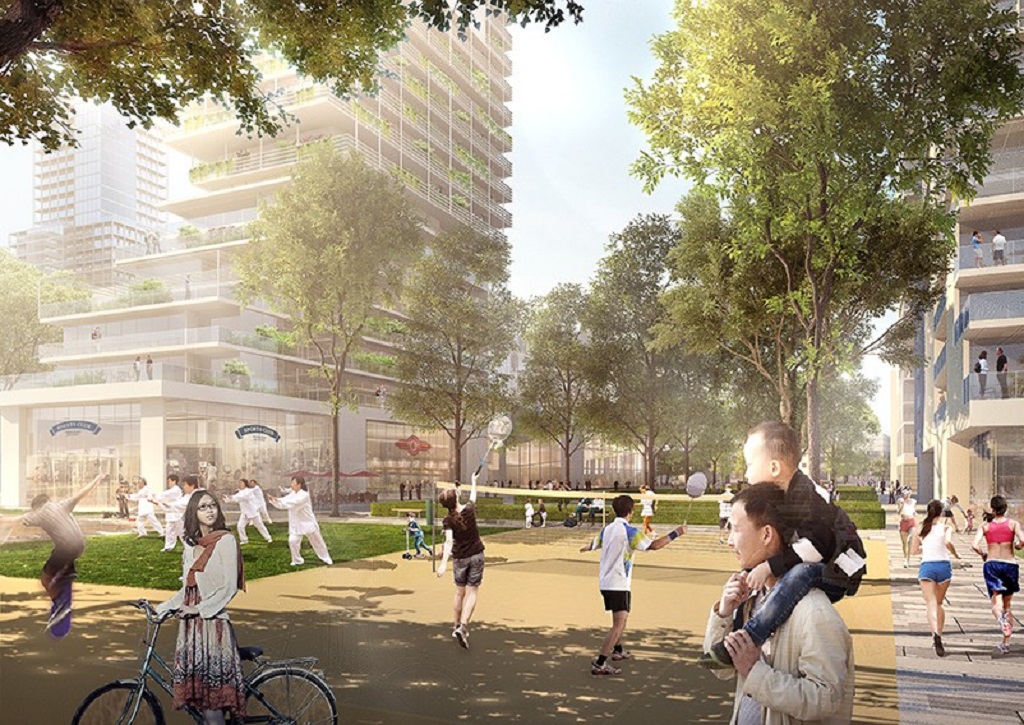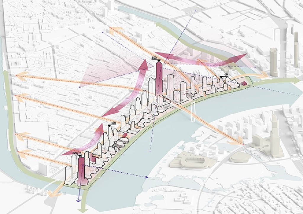 Định hướng tầng cao toàn khu, với 2 điểm nhấn chính là cao ốc phức hợp mới với chiều cao 350m và cao ốc chung cư cao 220m.