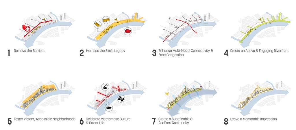 “Việc tái sử dụng một cách thích hợp các tòa nhà hải quan, kho hàng, và cơ sở hạ tầng cảng từ thời Pháp thuộc, tôn vinh những di sản công nghiệp của khu cảng cũ trong một khu phức hợp đa chức năng mới ở ven sông. Bị rào kín suốt nhiều thế hệ, dải bờ sông này đang kết nối lại với thành phố bằng một công viên công cộng rộng mở, tích hợp các hệ sinh thái bản địa và bảo vệ thành phố khỏi mực nước biển dâng.