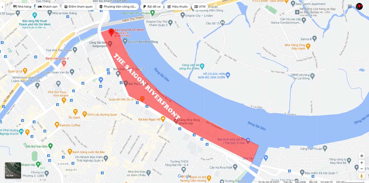 Dự án The Saigon Riverfront hay còn có tên gọi khác là ” Dự án Khu Phức Hợp Khánh Hội – Nhà Rồng “ sở hữu khu đất vàng ven sông Sài Gòn trải dài từ Bến Nhà Rồng ra toàn bộ cảng Khánh Hội Quận 4. Đặc biệt vị trí rất thuận tiện trong việc kết nối giao thông, thừa hưởng cơ sở hạ tầng xã hội hoàn thiện của khu vực. sau khi đại độ thị The Saigon Riverfront quận 4 hoàn thành và đưa vào hoạt động sẽ mở ra một kỷ nguyên mới cho bờ sông TP HCM, kiến tạo phong cách sống hiện đại, mang lại giá trị sống tuyệt vời cho cộng đồng dân cư.