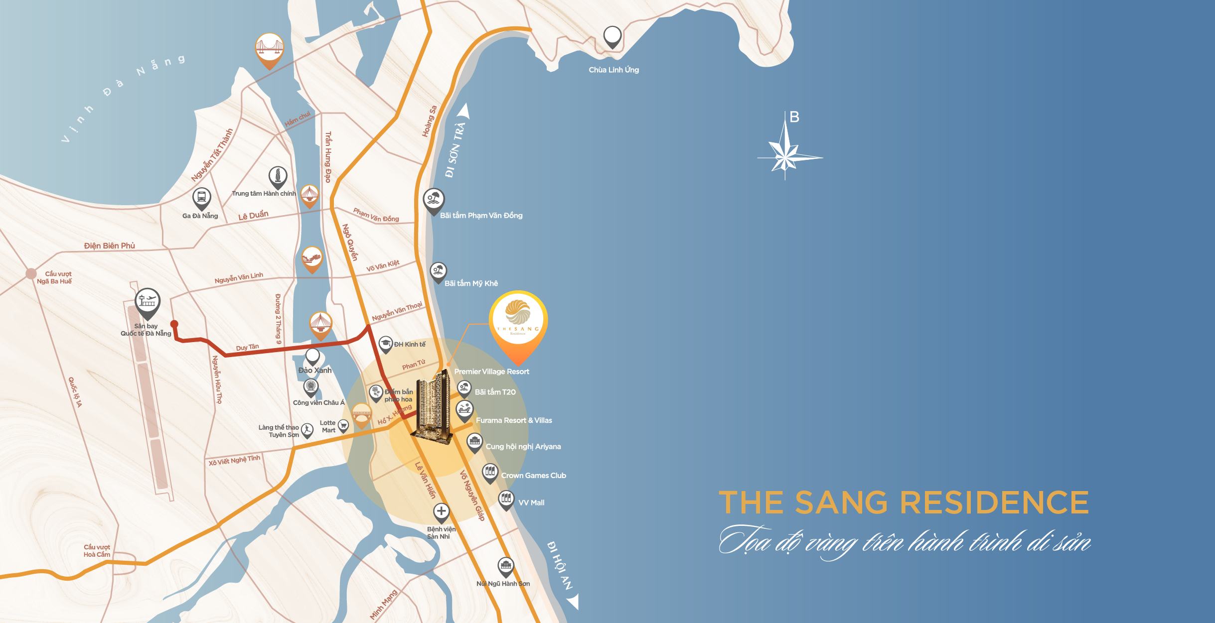 Dự án The SANG Residence nằm trên tuyến đường Phạm Kiệt thuộc phường Khuê Mỹ, quận Ngũ Hành Sơn, thành phố Đà Nẵng.